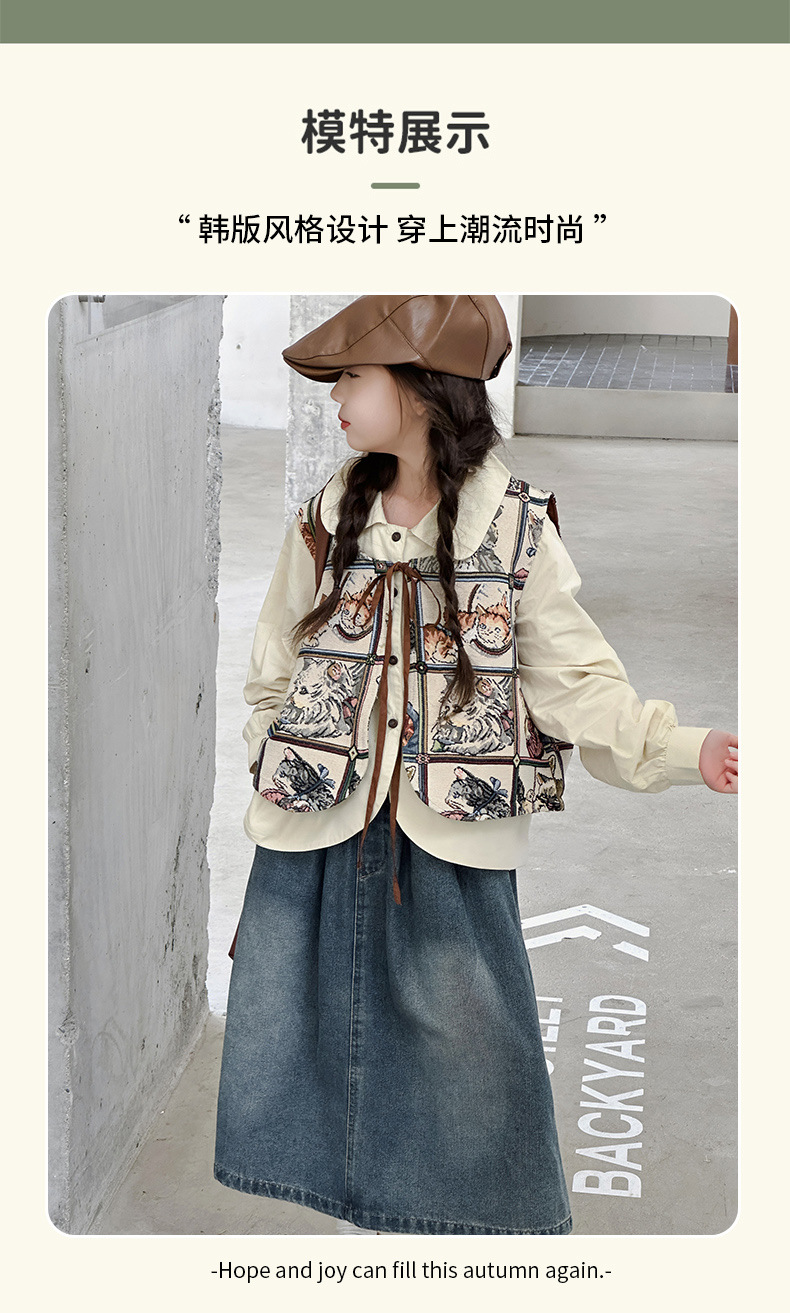 모카 공주 소녀 조끼 가을 아동복 2024 새로운 한국 스타일 중대형 어린이 올 매치 조끼 탑 틈새 트렌디