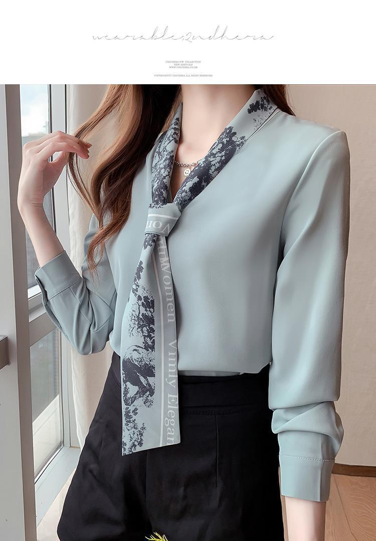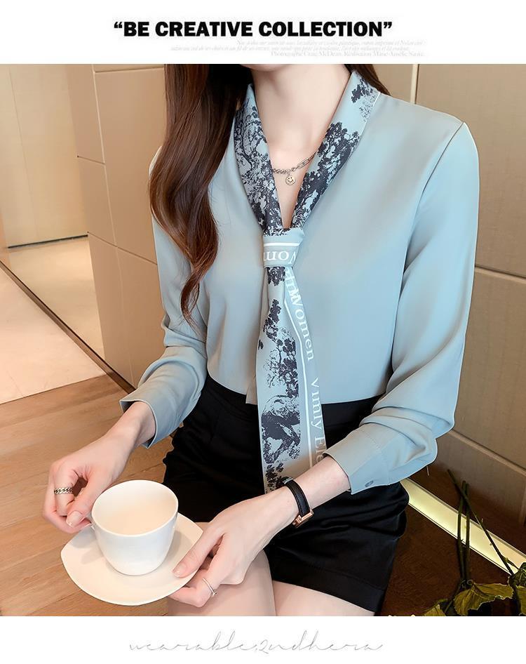 가을 여성 쉬폰 셔츠 여성의 봄과 가을 2024 새로운 초가을 긴 소매 탑 패션 기질 셔츠스토어 가기