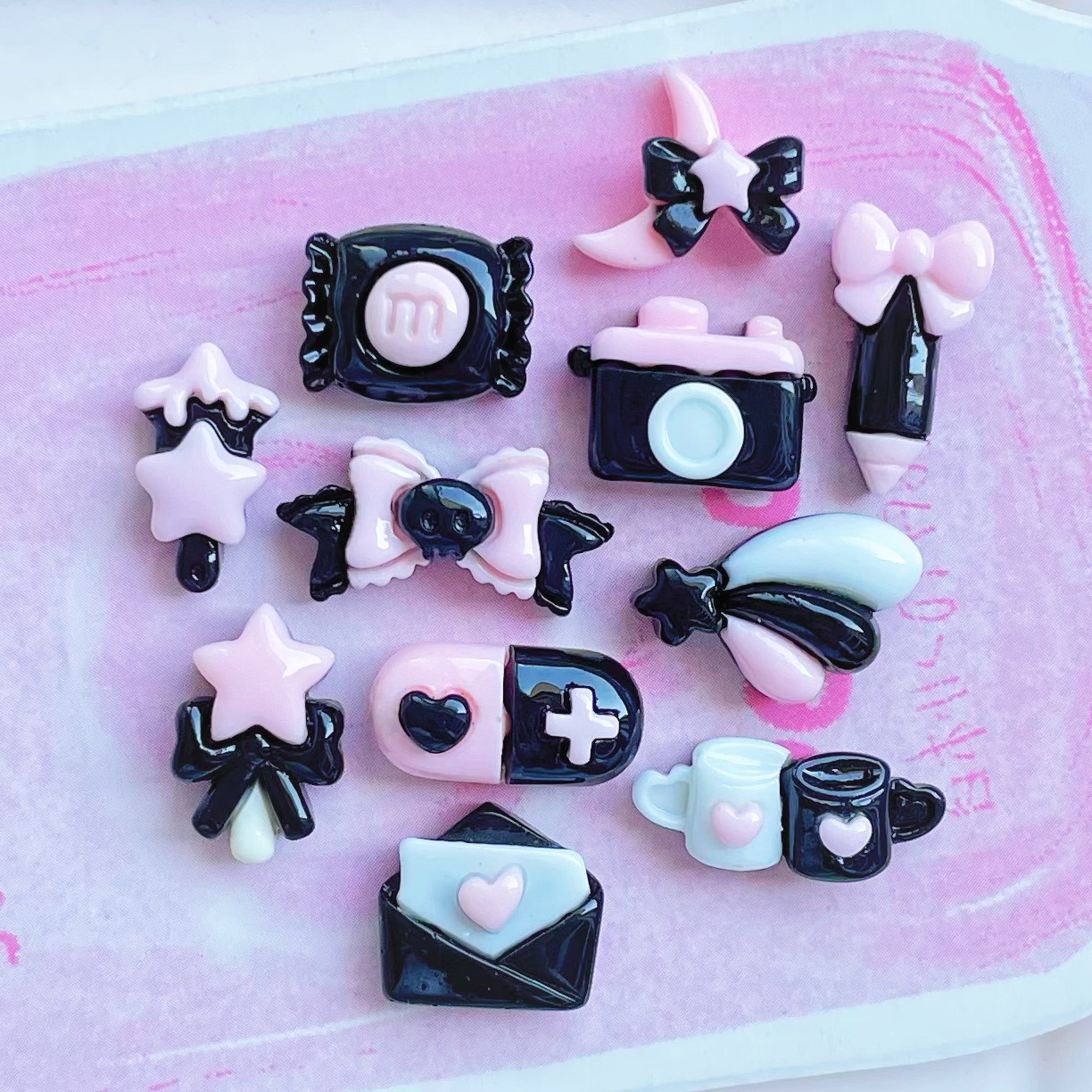 미니 블랙 핑크 연필 캡슐 수지 액세서리 활 쥬얼리 액세서리 크림 접착제 전화 케이스 헤어핀 매니큐어