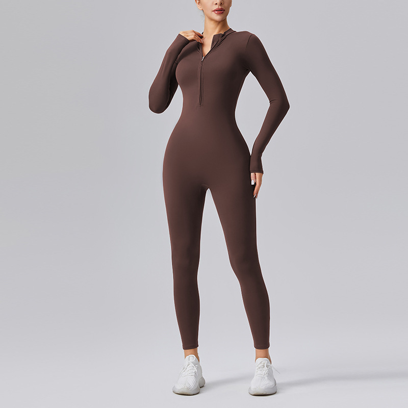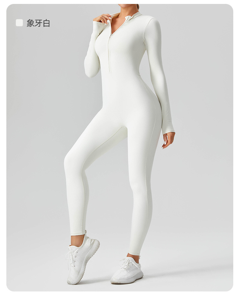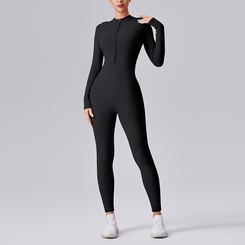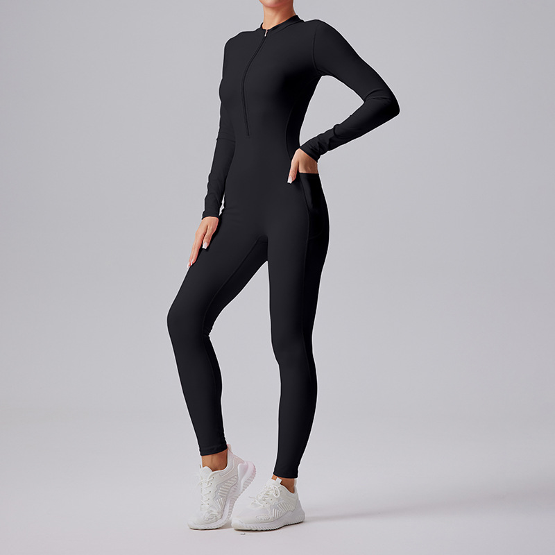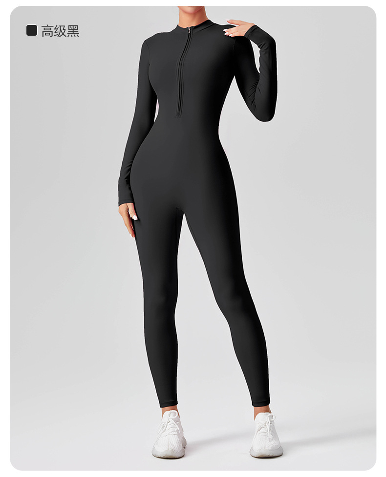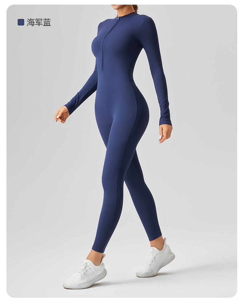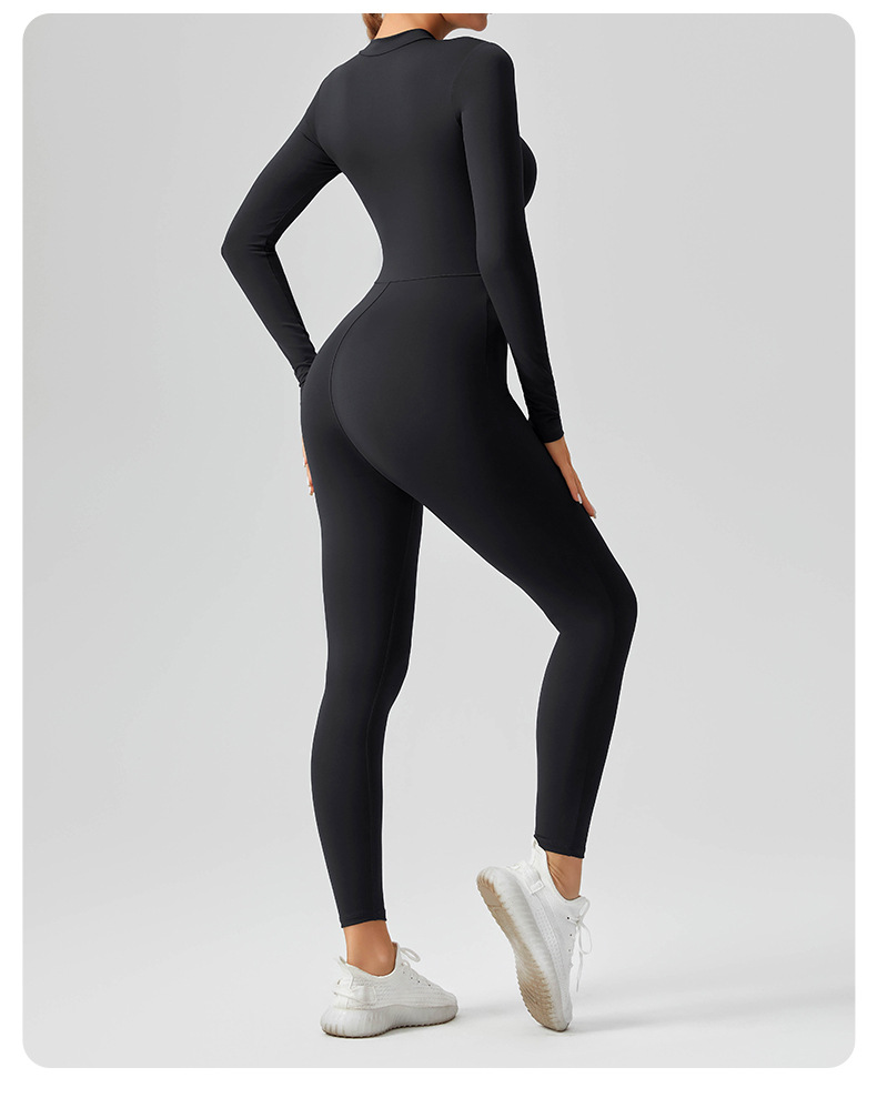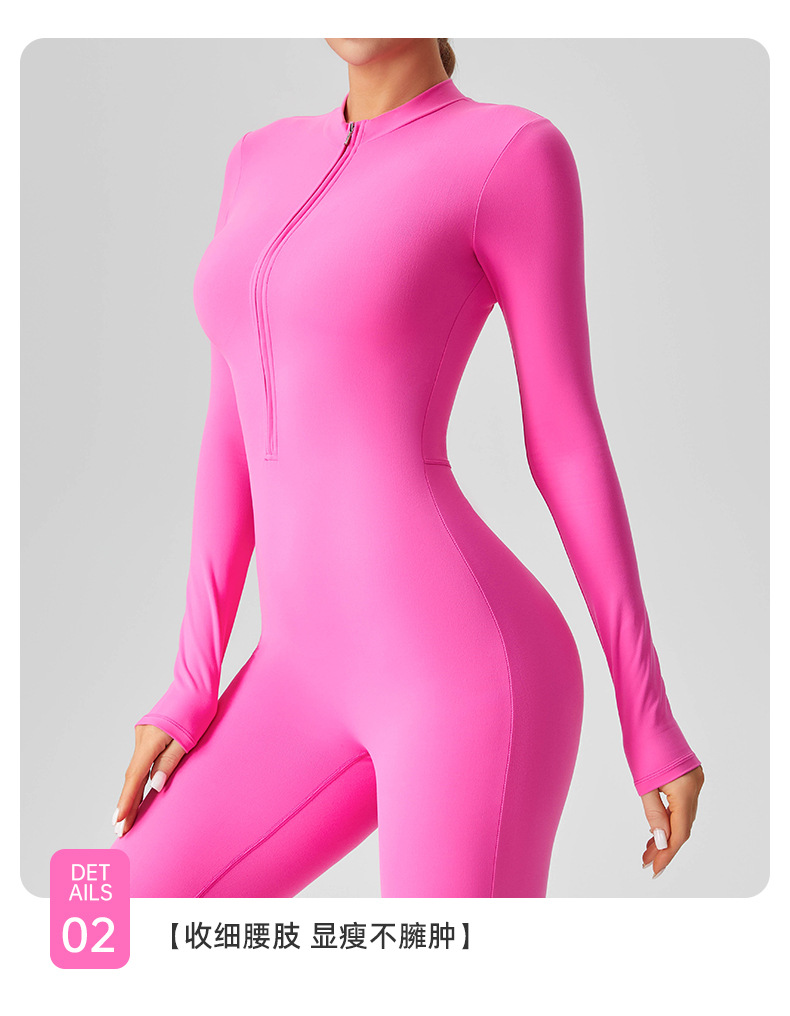 유럽과 미국의 국경 반 지퍼 긴팔 지퍼 점프 수트 여성용 슬림 핏 힙합 피트니스 세트 바지 스포츠 요가 바지 여성