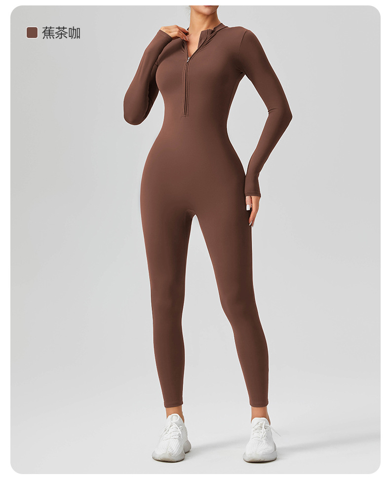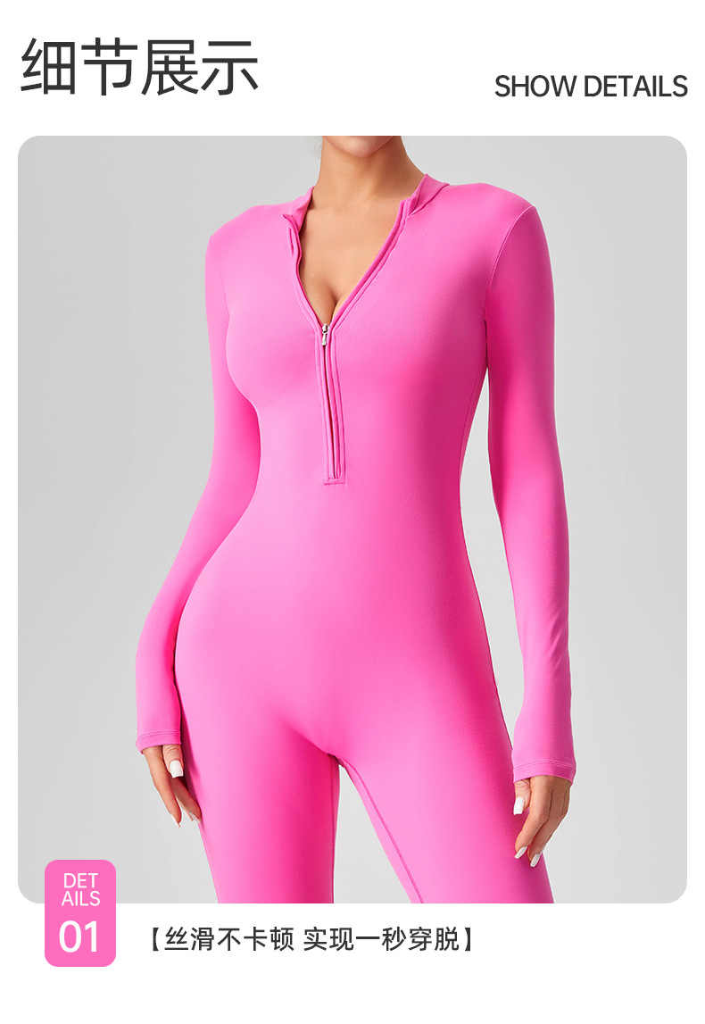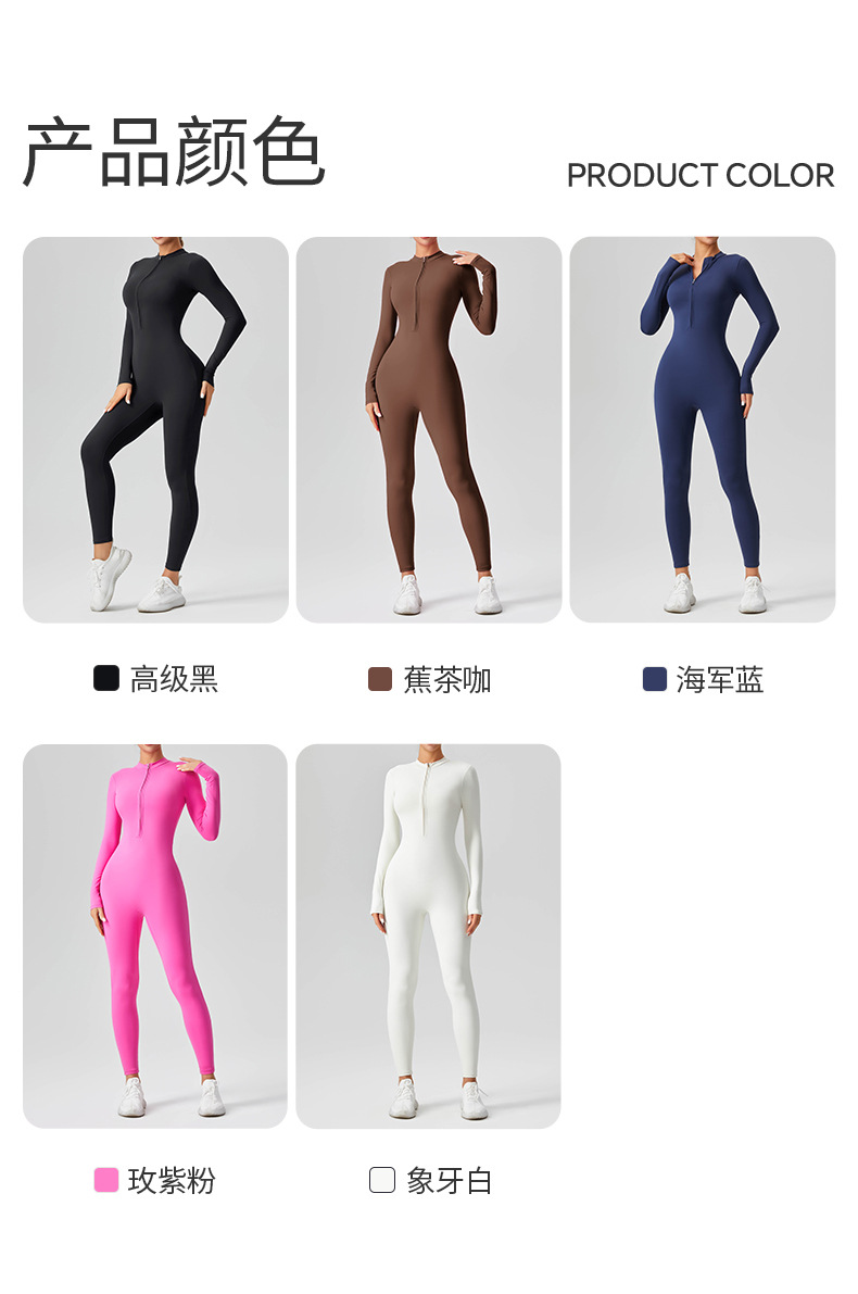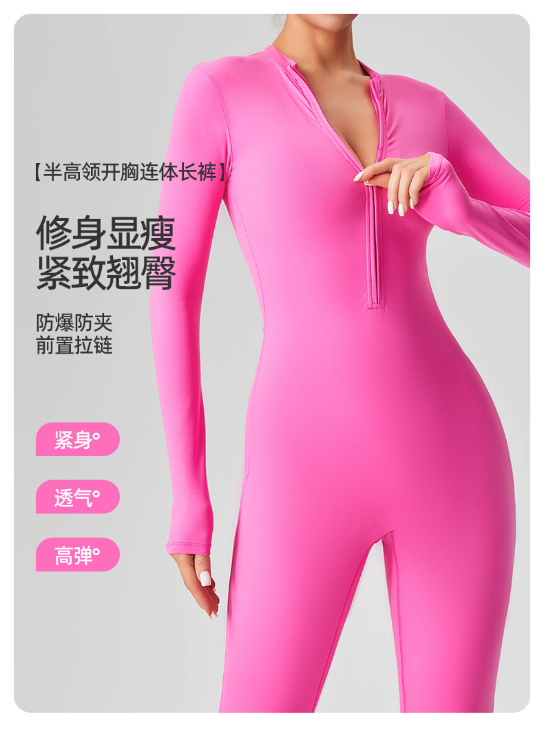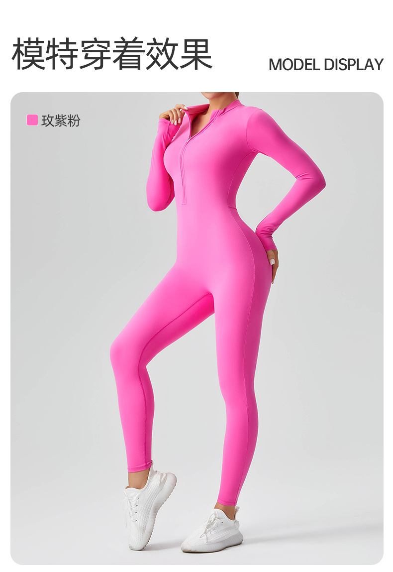유럽과 미국의 국경 반 지퍼 긴팔 지퍼 점프 수트 여성용 슬림 핏 힙합 피트니스 세트 바지 스포츠 요가 바지 여성스토어 가기