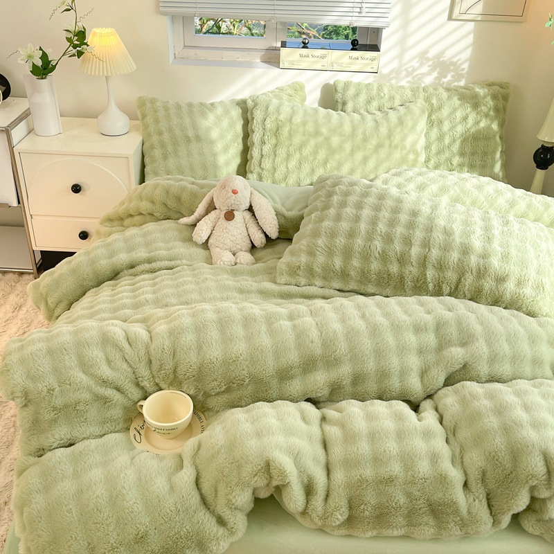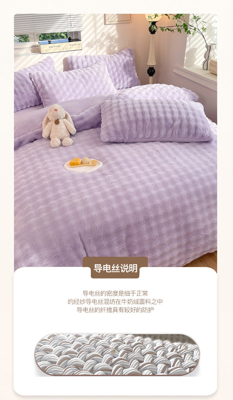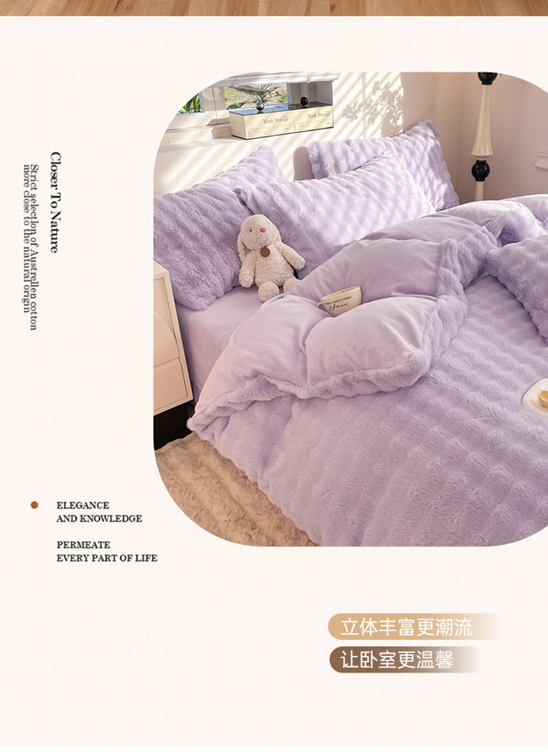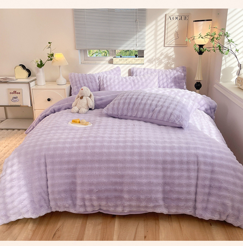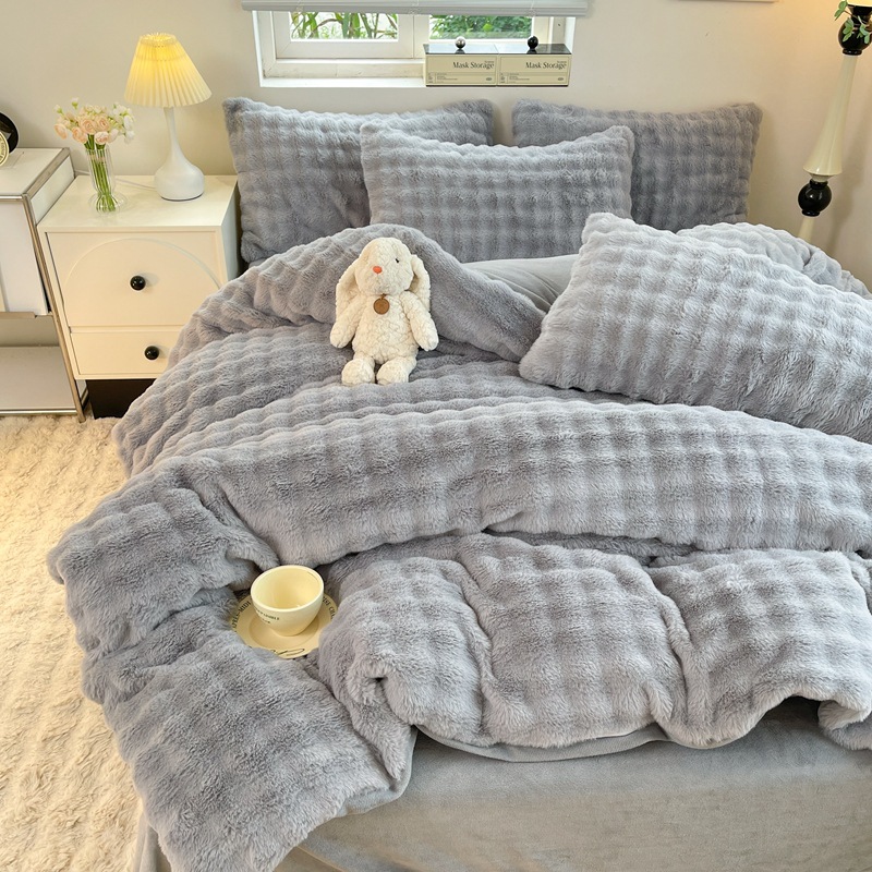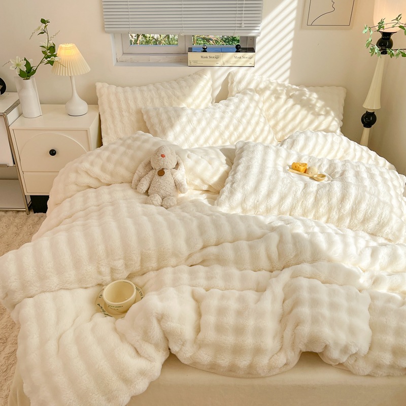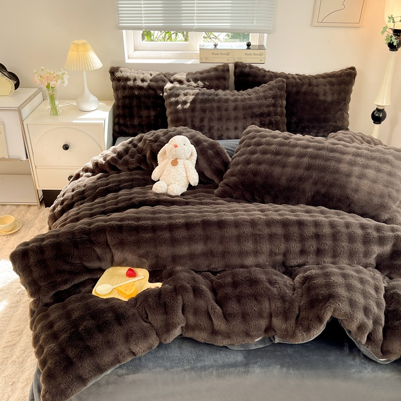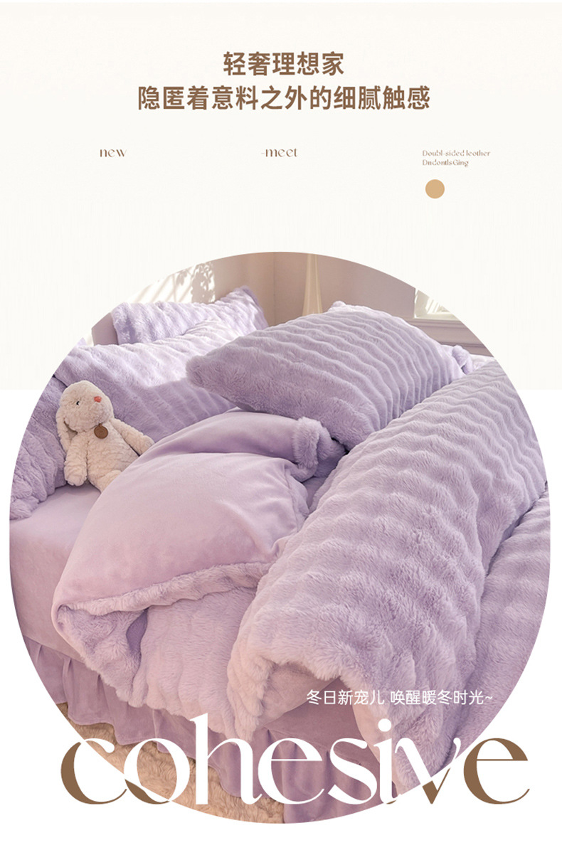 토끼 봉제 기모 4 종 세트 겨울 우유 벨벳 두꺼운 침대 시트 3 종 세트 겨울 양면 벨벳 퀼트 커버 키트