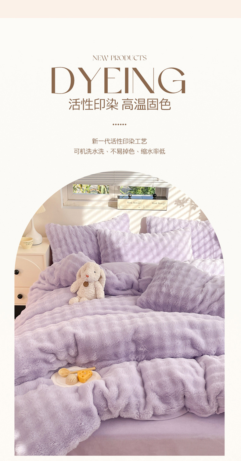 토끼 봉제 기모 4 종 세트 겨울 우유 벨벳 두꺼운 침대 시트 3 종 세트 겨울 양면 벨벳 퀼트 커버 키트스토어 가기