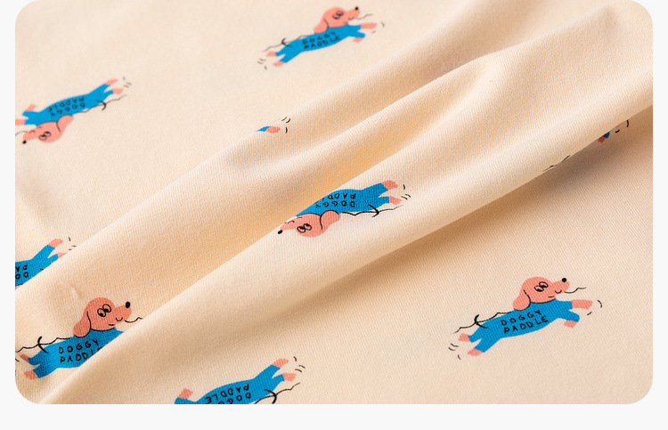 • 살구 바닥 전체 인쇄 파란색 개 재고 있음