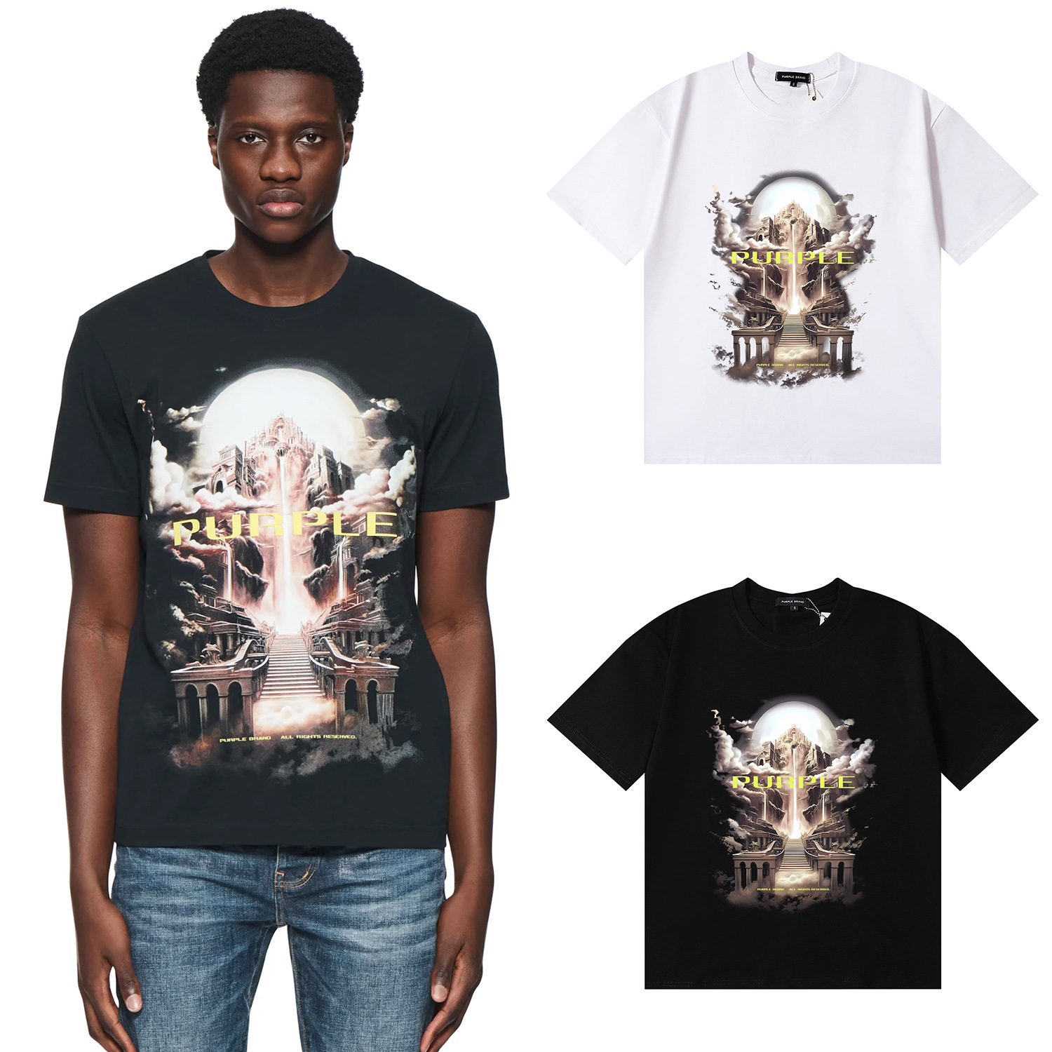 2024SS 여름 새로운 보라색 빈티지 궁전 인쇄 트렌디 한 짧은 소매 느슨한 남성과 여성의베이스 티스토어 가기