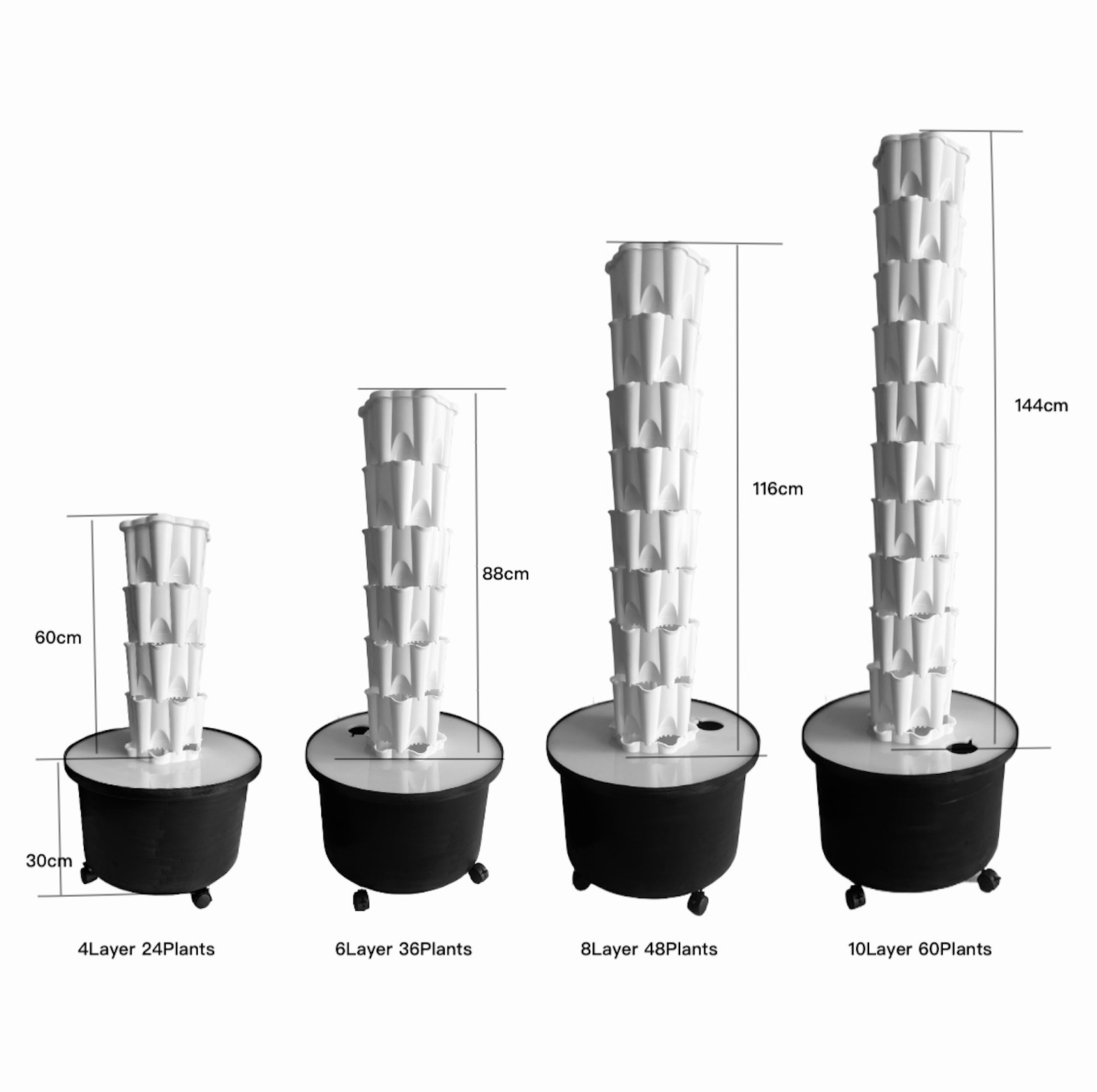 水培塔是一种立体种植的高效种植方法,它是利用喷雾喷水装置将营养液雾化为小雾滴状,直接喷射到植物根系以提供植物生长所需的水分和养分的一种无土栽培技术。作物悬挂在一个密闭的栽培装置(槽、箱或床)中,而根系裸露在栽培装置内部,营养液通过喷雾装置雾化后喷射到根系表面,减少栽培植物硝酸盐含量,它能使作物产量成倍增长,它是不用土壤或基质来栽培植物的一项农业高新技术,其因以人工创造作物根系环境取代了土壤环境,可有效解决传统土壤栽培中难以解决的水分、空气、养分供应的矛盾,使作物根系处于最适宜的环境条件下,从而发挥作物的增长潜力,使植物生长量、生物量得到大大提高。