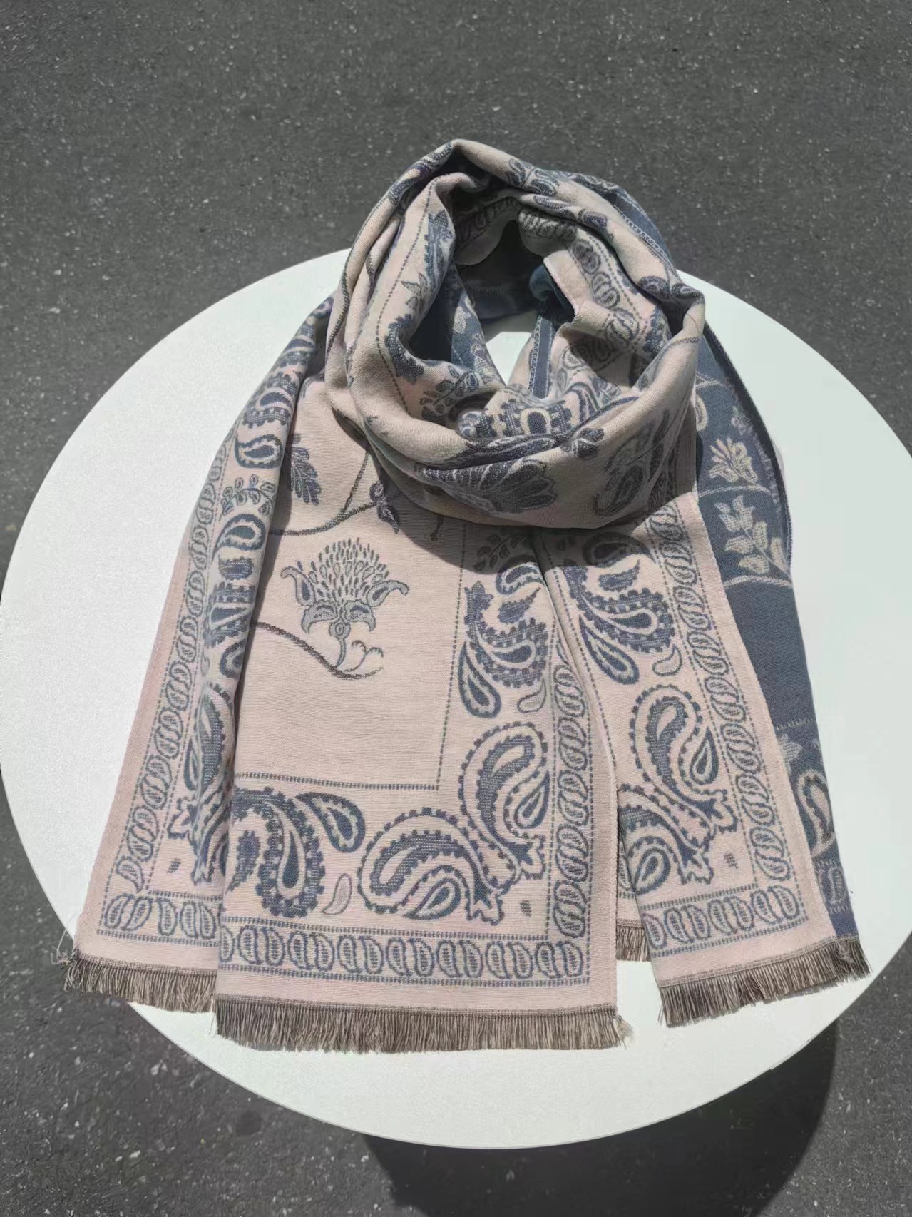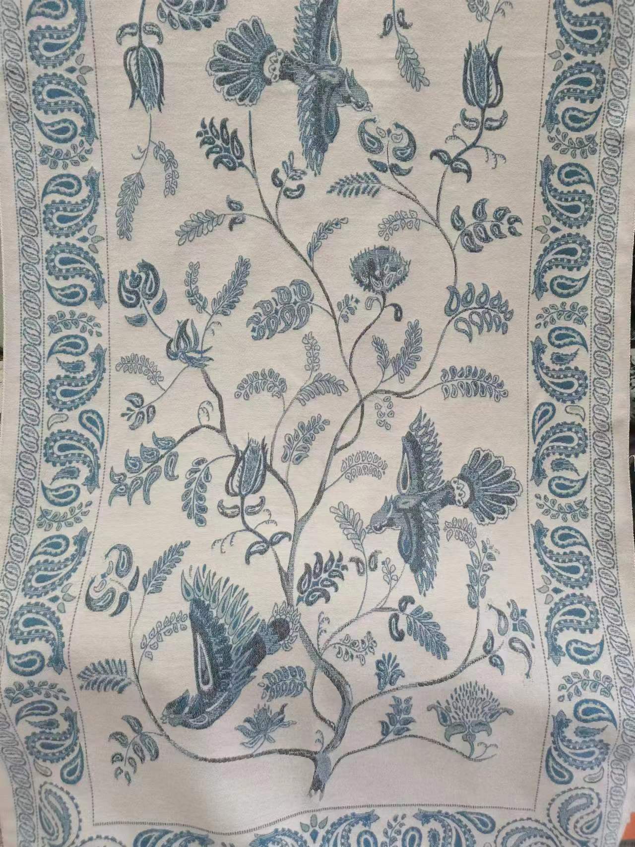 모조 캐시미어 스카프 에어컨 룸 오피스 따뜻한 사진 두꺼운 목도리 여성의 캐슈 꽃 블루 버드 패턴 민족 스타일스토어 가기