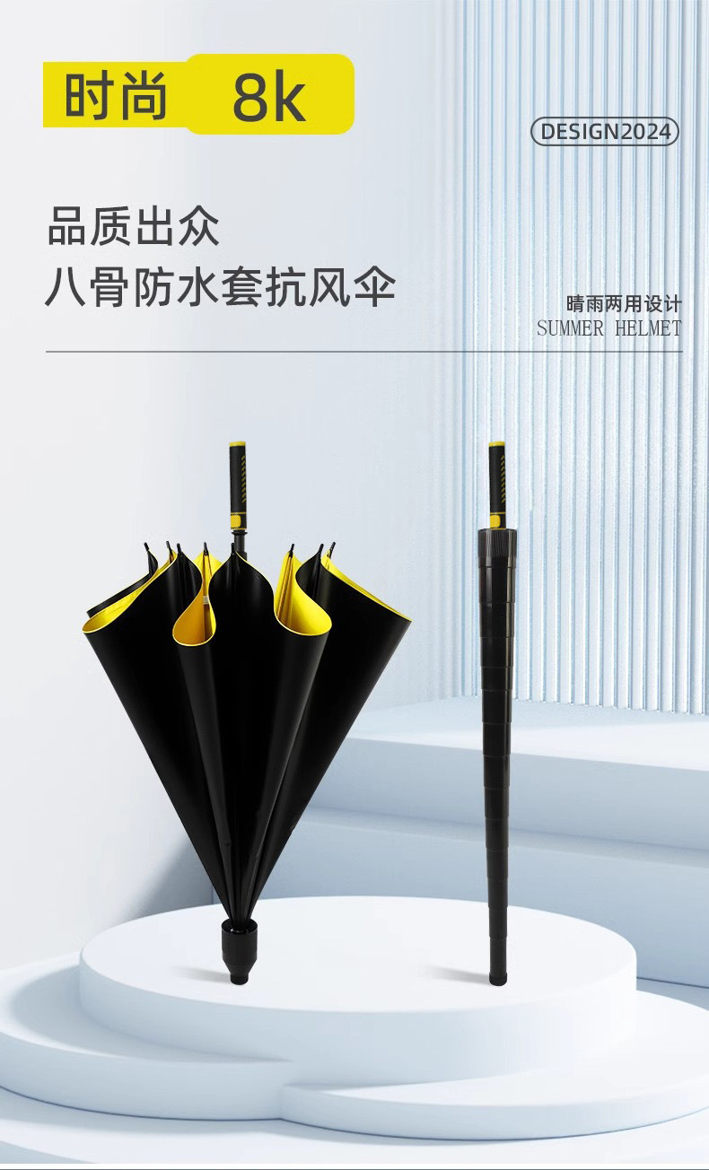 • 8본 방수커버 자동직선우산(외부 검정색 비닐, 내부 노란색)