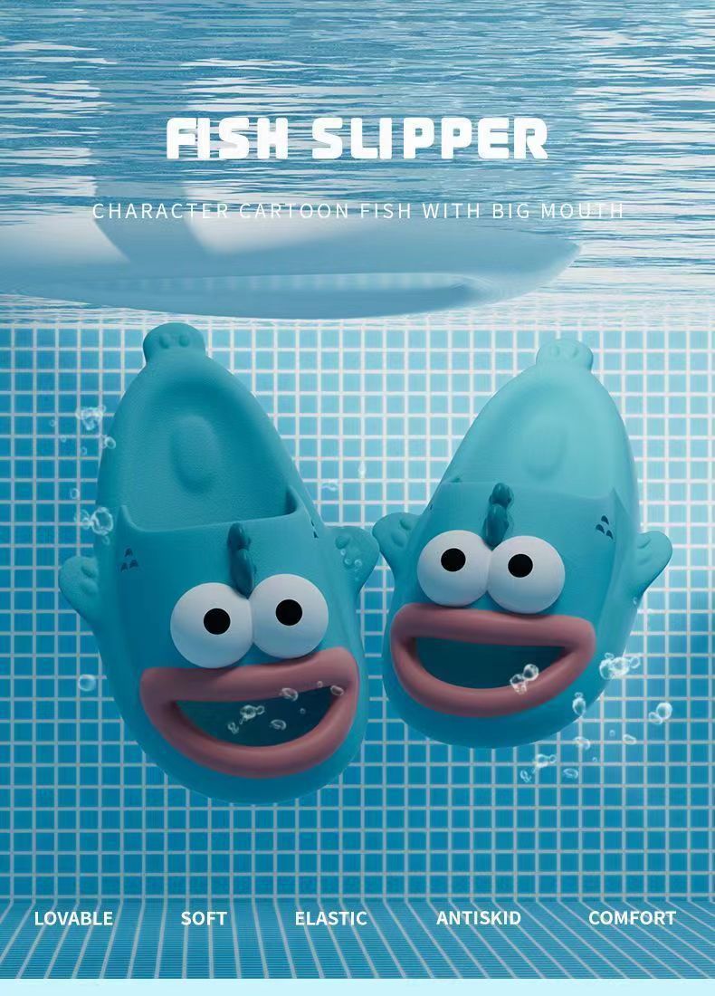 슬리퍼 여성 여름 홈 착용 2024 새로운 재미있는 미끄럼 방지 커플 귀여운 미운 생선 샌들 남성용