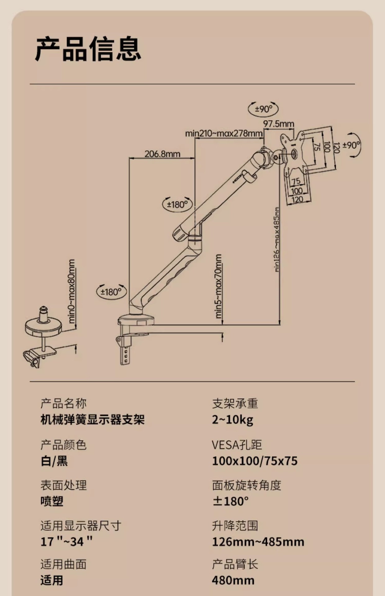디자이너 디스플레이 브래킷 기계식 팔 캔틸레버 리프팅 데스크탑 컴퓨터 화면 브래킷 17-34"스토어 가기