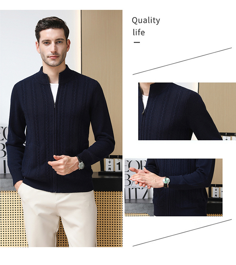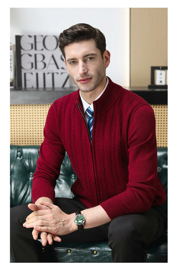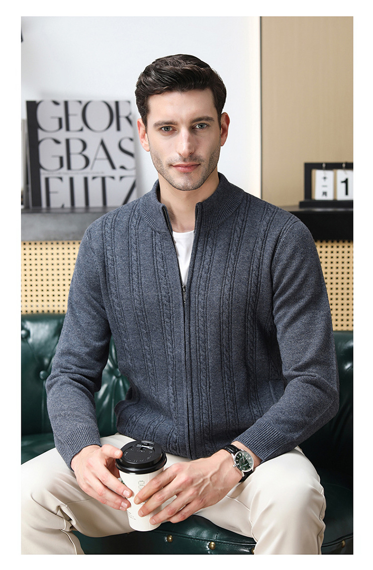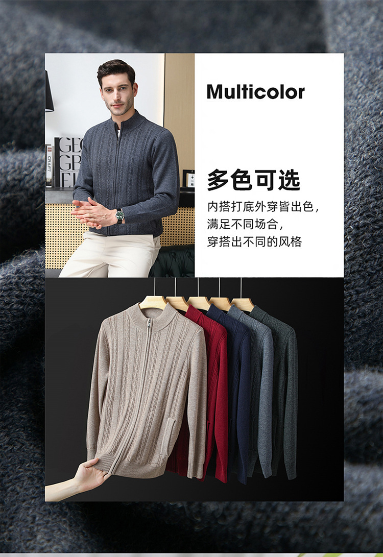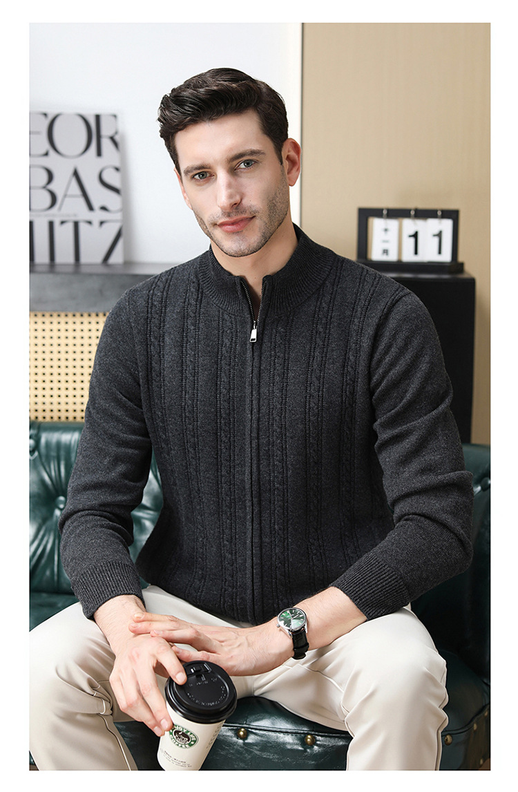 메리노 울 스웨터 남자 긴팔 지퍼 칼라 퓨어 울 니트웨어 재킷 중년 두꺼운 스웨터 카디건