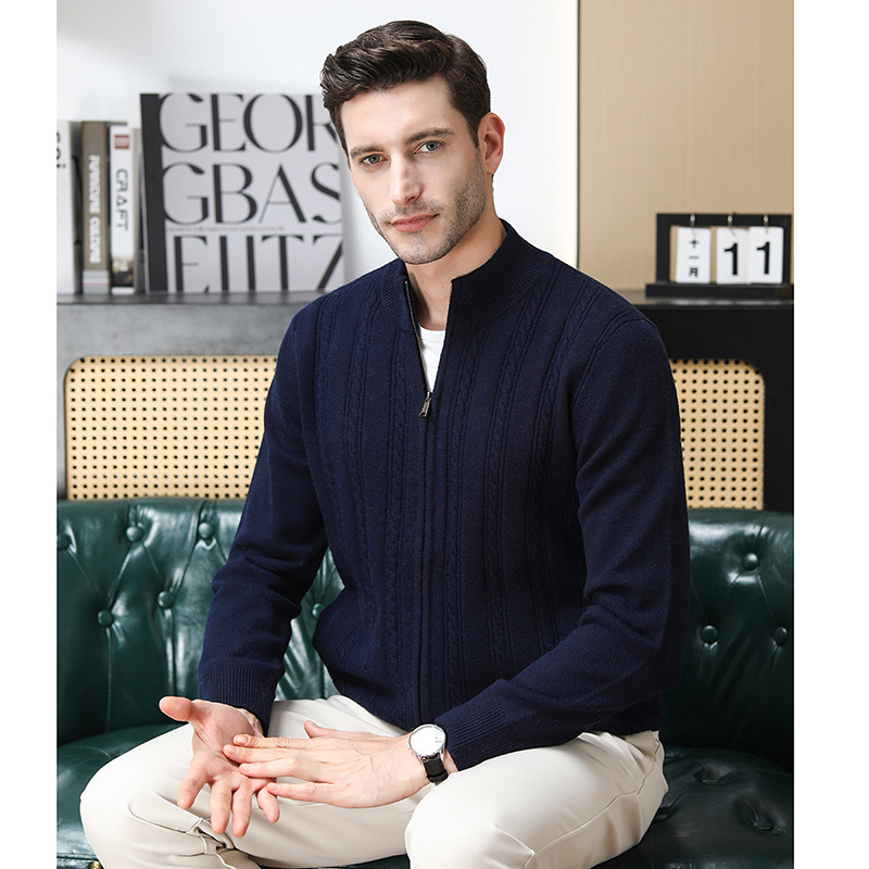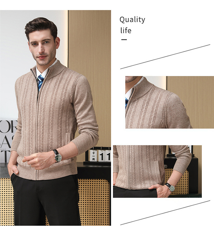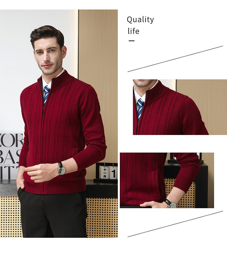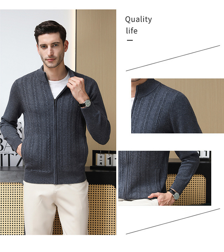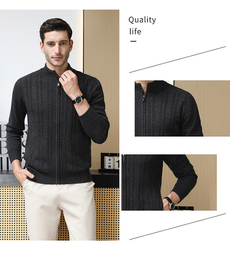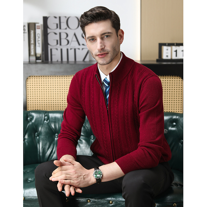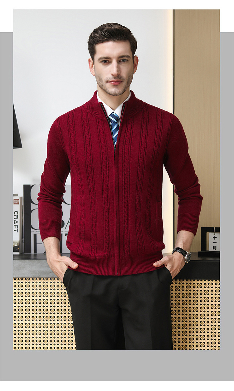 메리노 울 스웨터 남자 긴팔 지퍼 칼라 퓨어 울 니트웨어 재킷 중년 두꺼운 스웨터 카디건