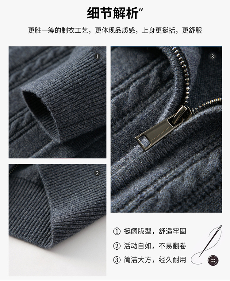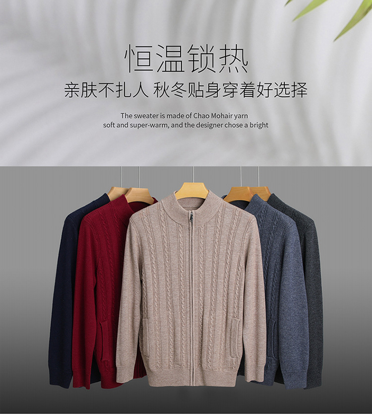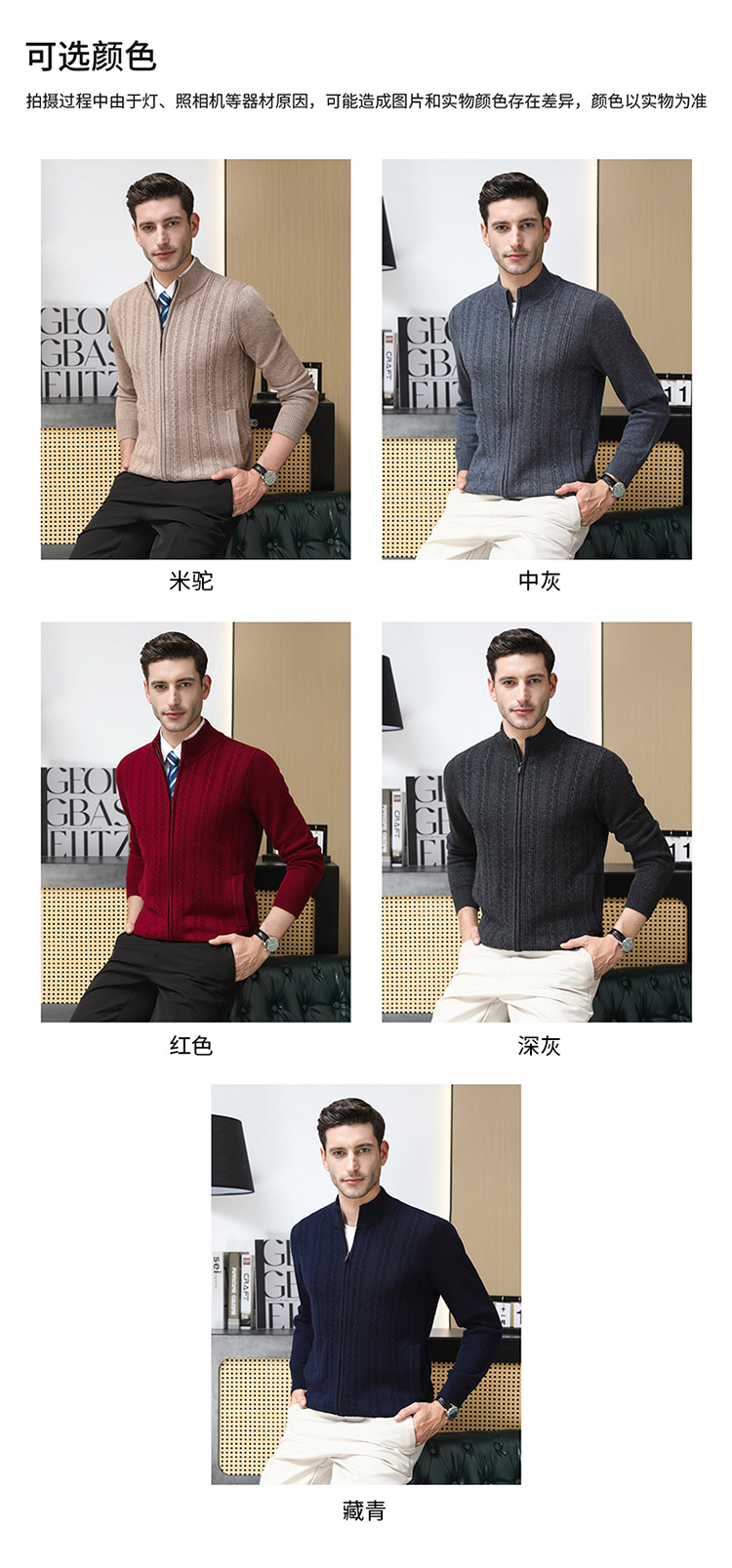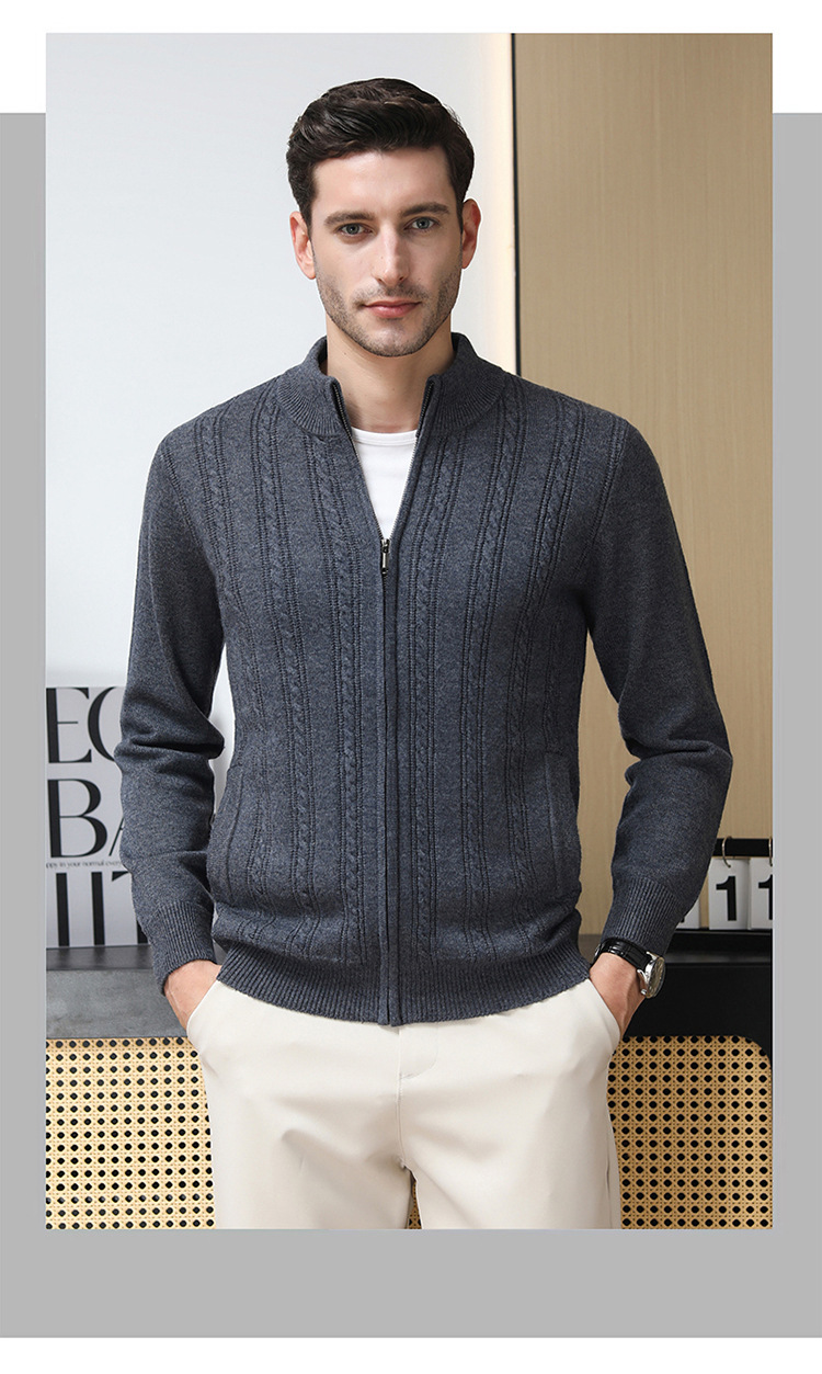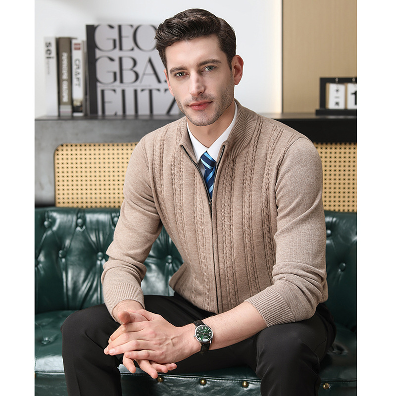 메리노 울 스웨터 남자 긴팔 지퍼 칼라 퓨어 울 니트웨어 재킷 중년 두꺼운 스웨터 카디건