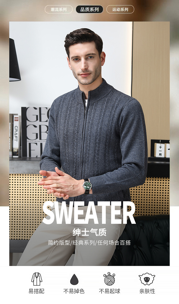 메리노 울 스웨터 남자 긴팔 지퍼 칼라 퓨어 울 니트웨어 재킷 중년 두꺼운 스웨터 카디건스토어 가기