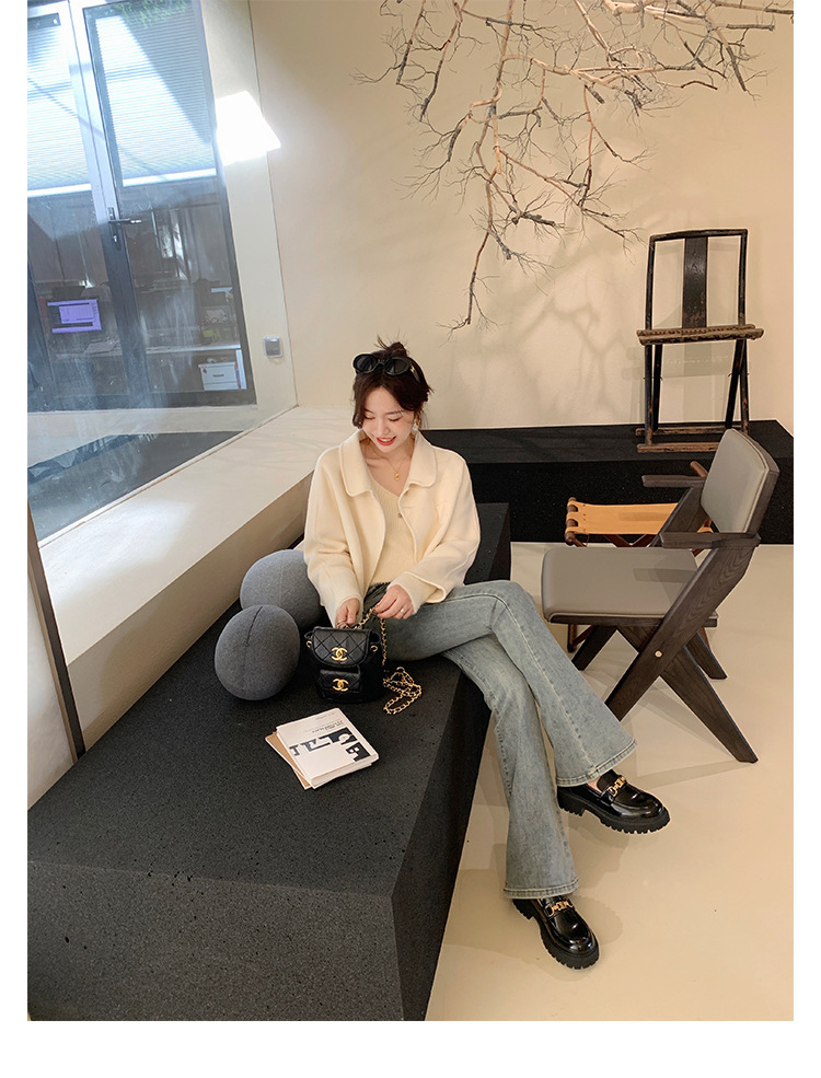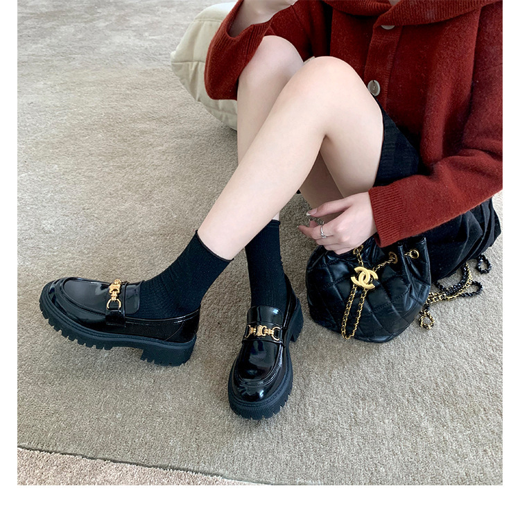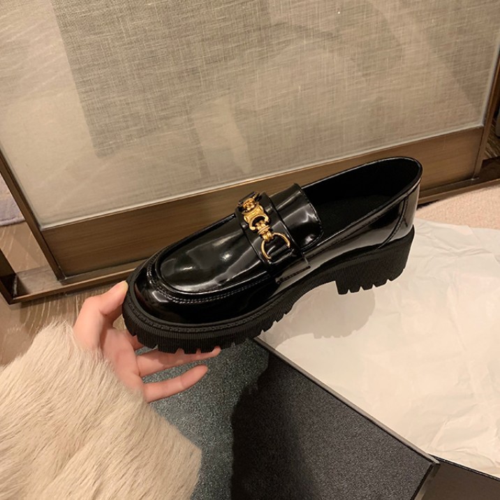 2024 새로운 높은 상품 절묘한 금속 버클 작은 가죽 신발 아카데미 스타일 승리 버클 두꺼운 힐 두꺼운 바닥 로퍼 여성의 봄과 가을