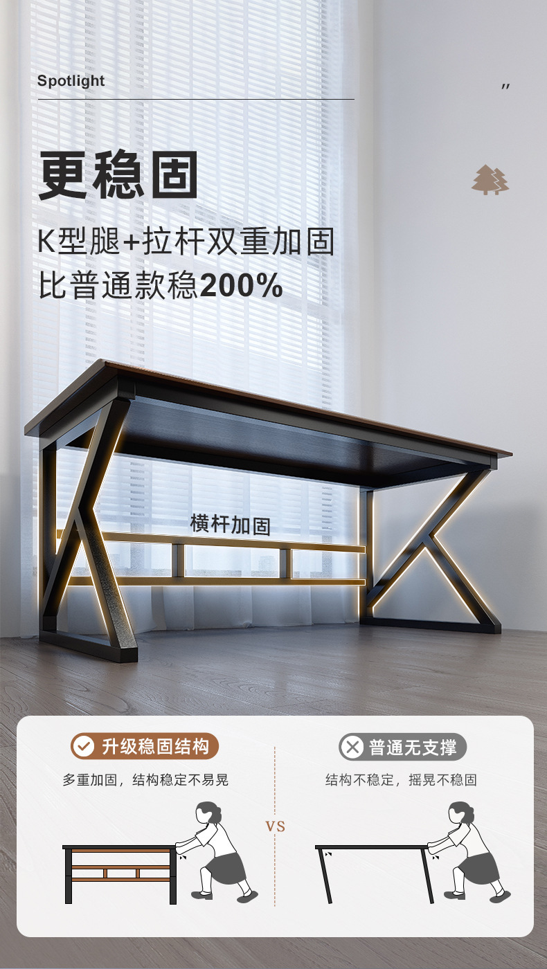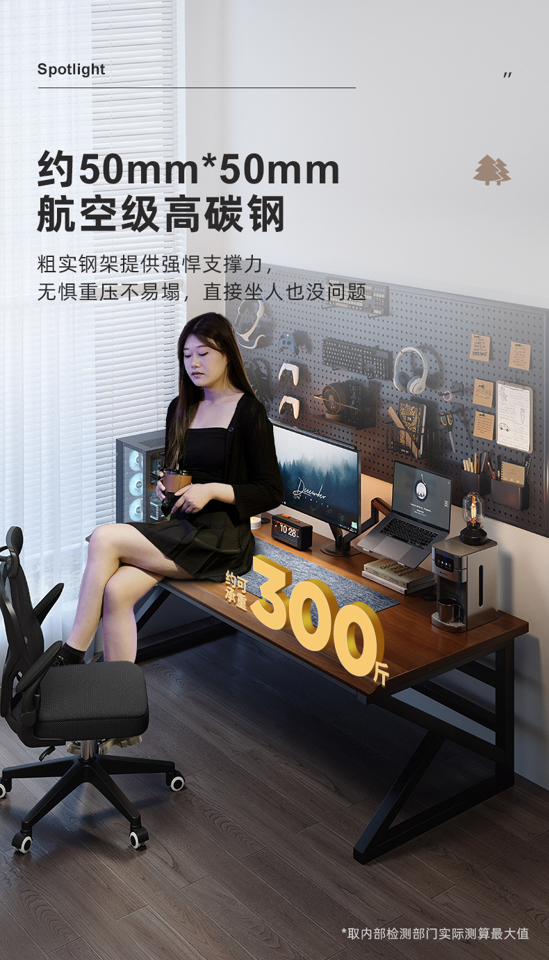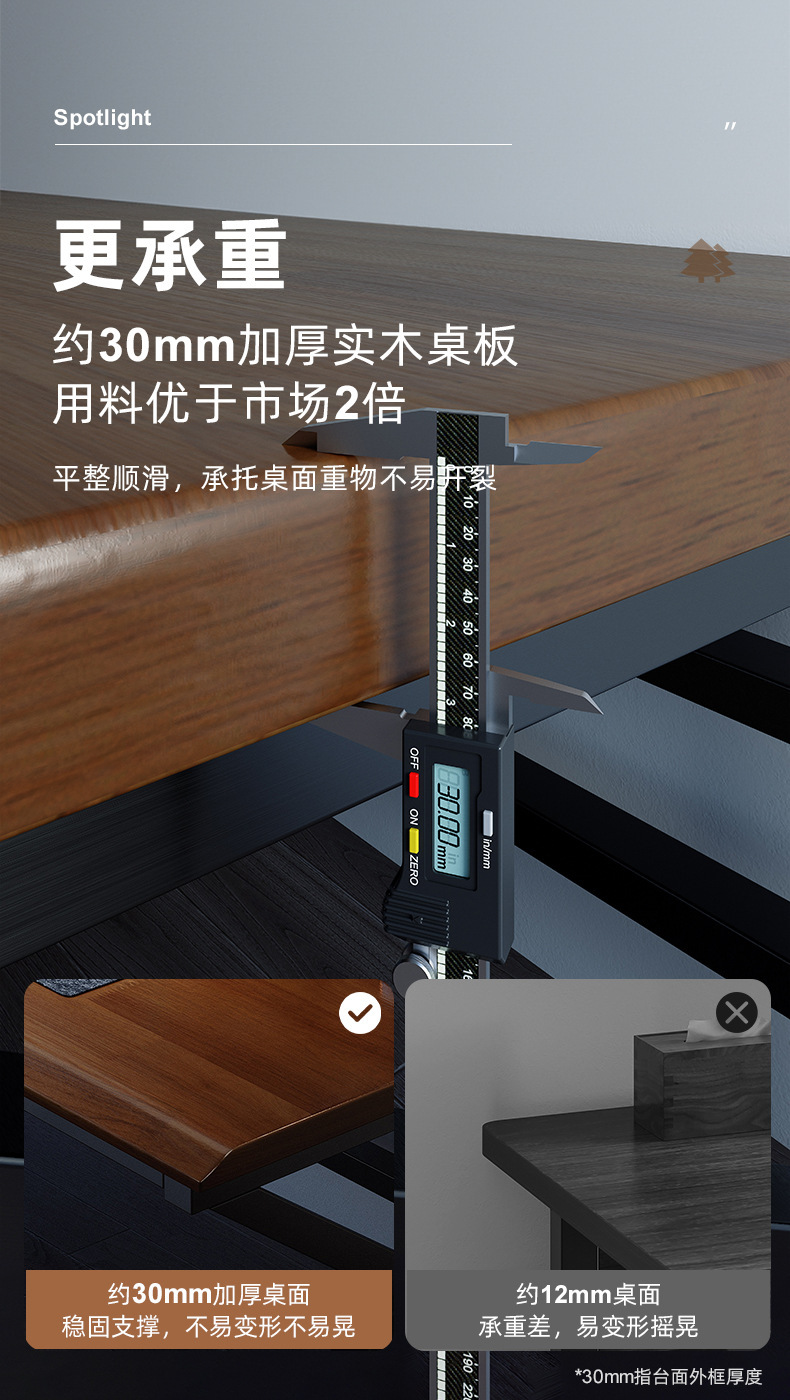 • 라이트 월넛 컬러 160*60*75CM [30MM 전체 원목 데스크탑-50MM 두꺼운 강철 다리]