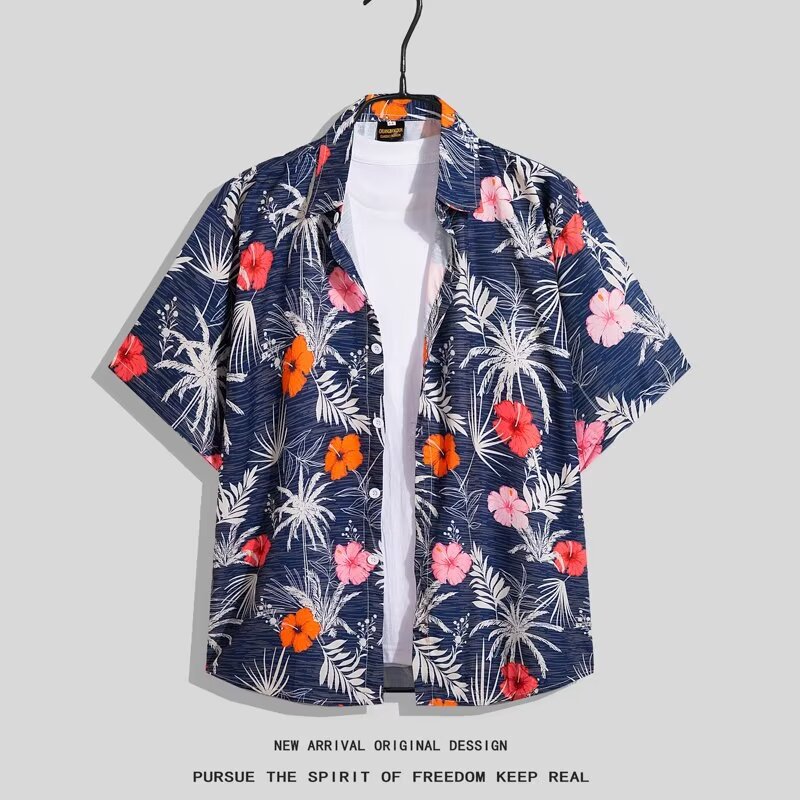 2024 비치 남자 해변 여행 휴일 하와이 반팔 꽃 셔츠 느슨한 올 매치 패션 커플 캐주얼스토어 가기