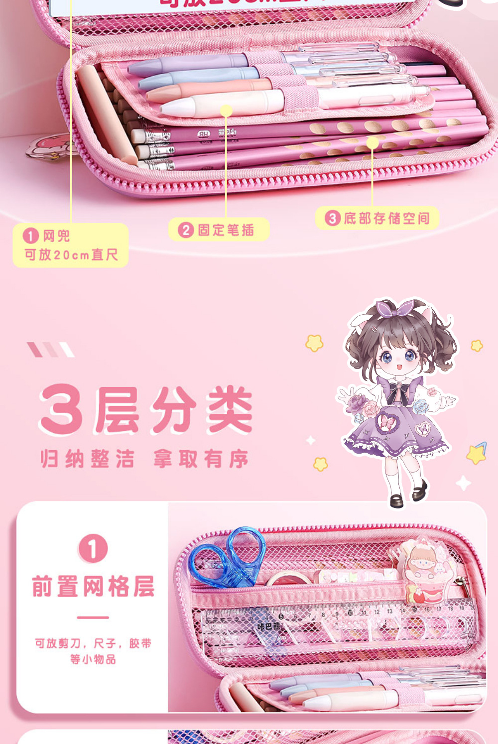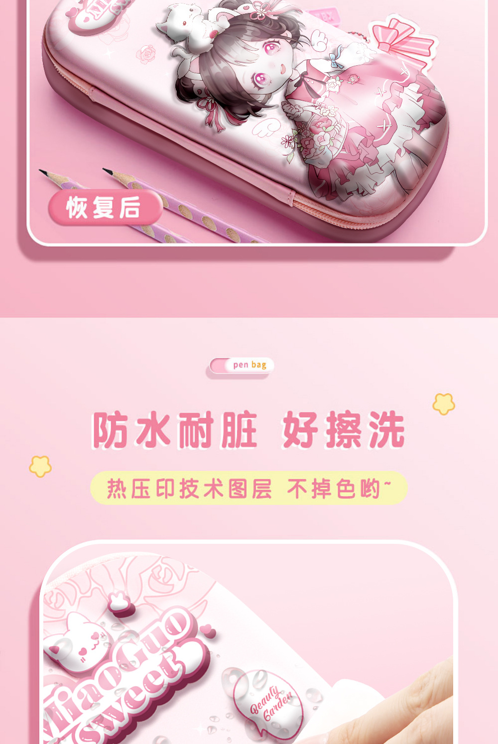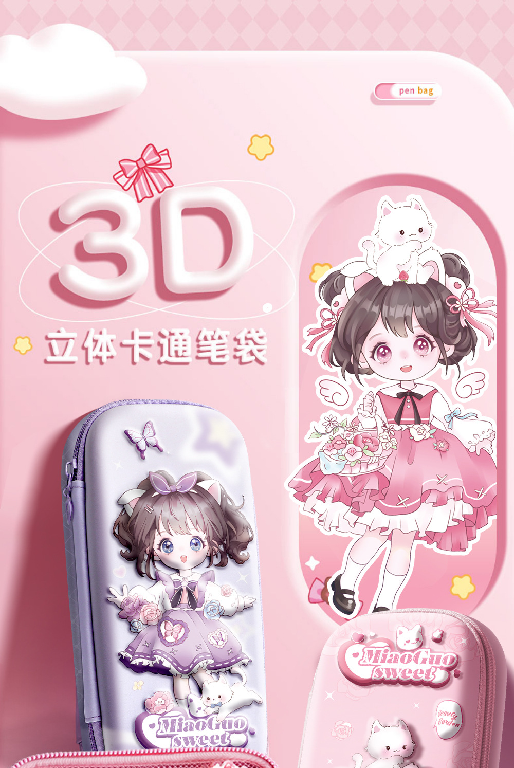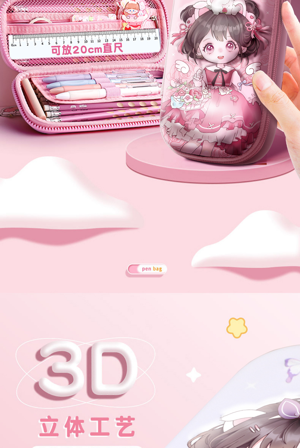 3D 연필 케이스 소녀 연필 케이스 여성 귀여운 초등학교 어린이 연필 케이스 1 학년
