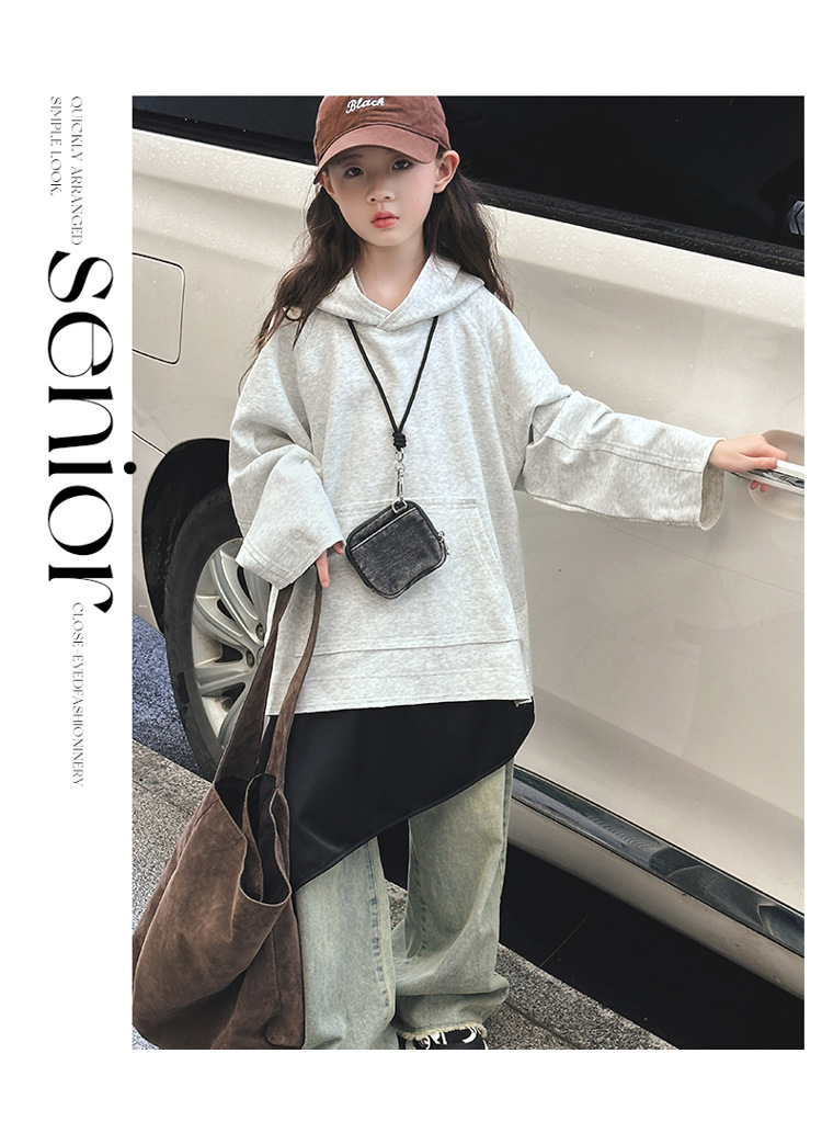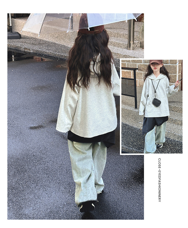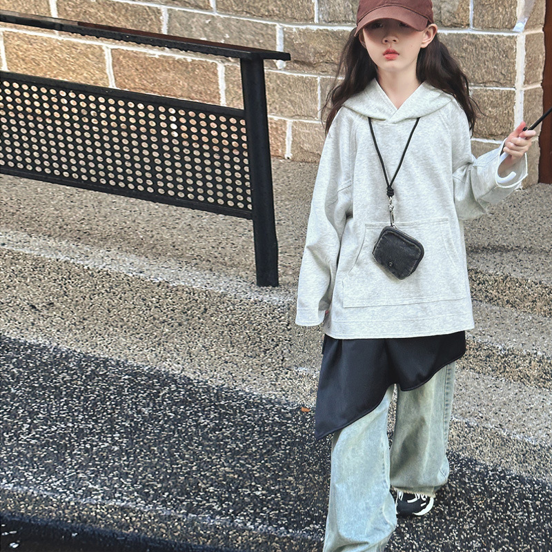 소녀 세트 가을 2024 새로운 서양식 아동복 큰 어린이 봄과 가을 유행 운동복 청바지 투피스 세트스토어 가기
