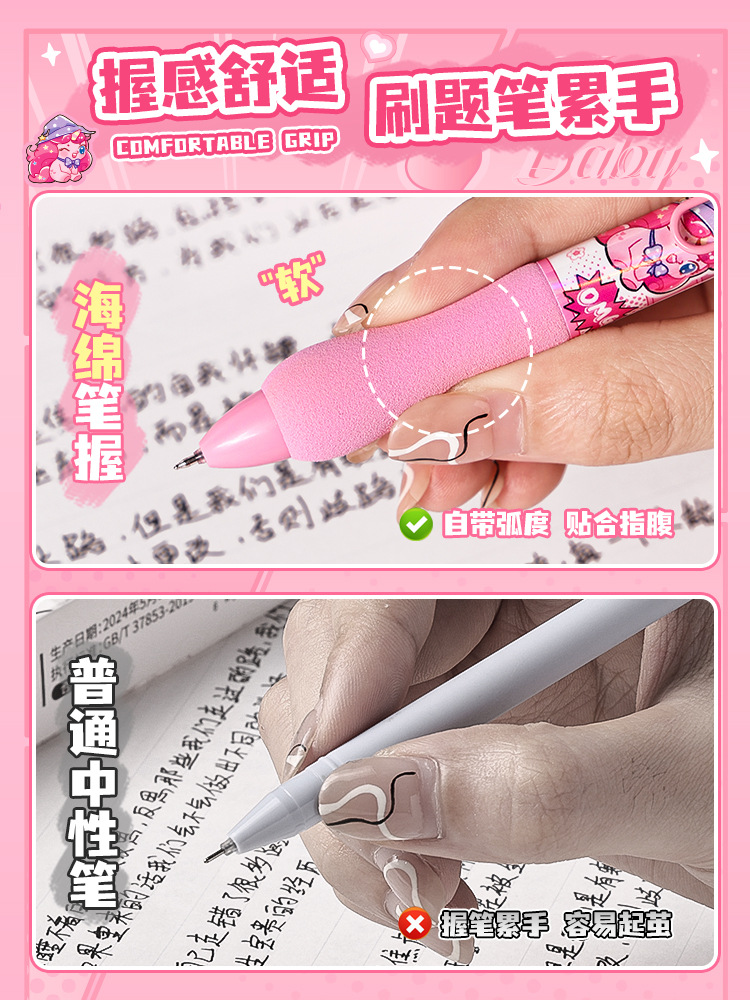 무지개 조랑말 프레스 젤 펜 높은 색상 가치 금속 패치 귀여운 만화 브러시 펜 학생 블랙 젤 펜