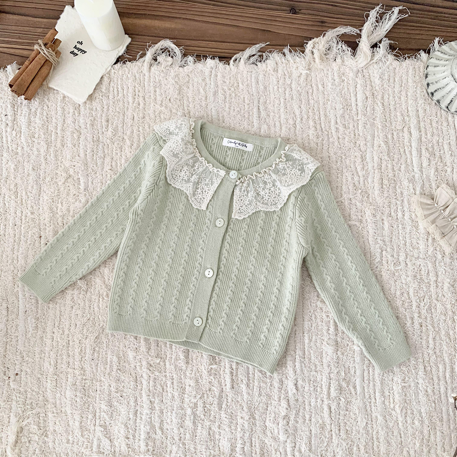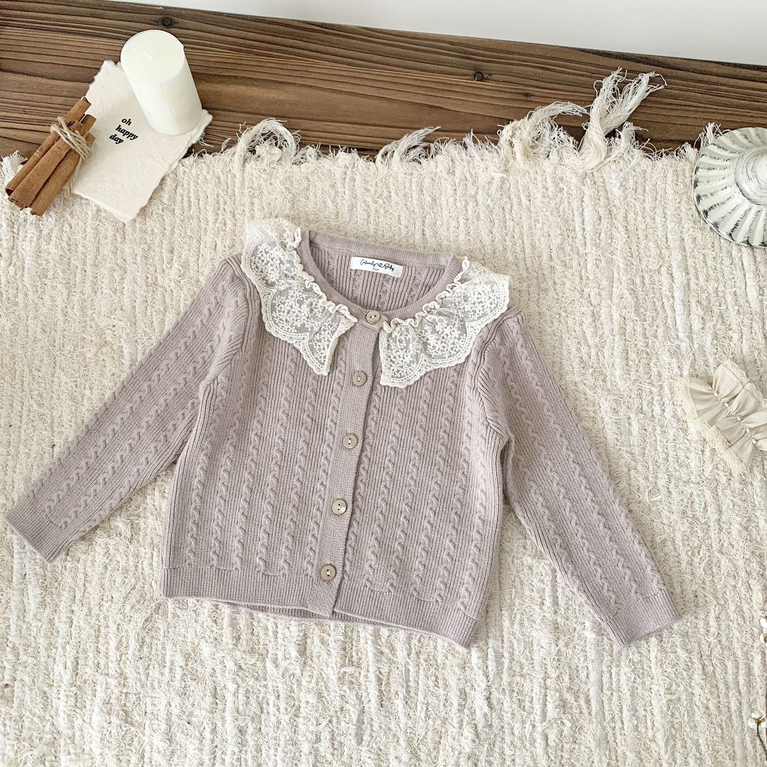 Ctuemily 가을 겨울 국경 아기 소녀의 자수 칼라 탄성 카디건 스웨터 여성의 보물 긴팔 연꽃 잎 칼라 코트
