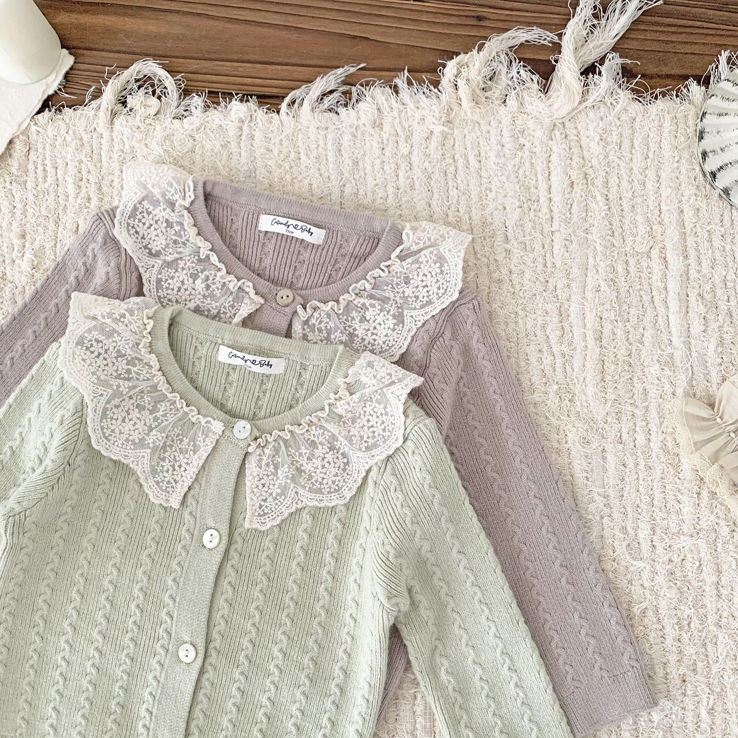 Ctuemily 가을 겨울 국경 아기 소녀의 자수 칼라 탄성 카디건 스웨터 여성의 보물 긴팔 연꽃 잎 칼라 코트스토어 가기