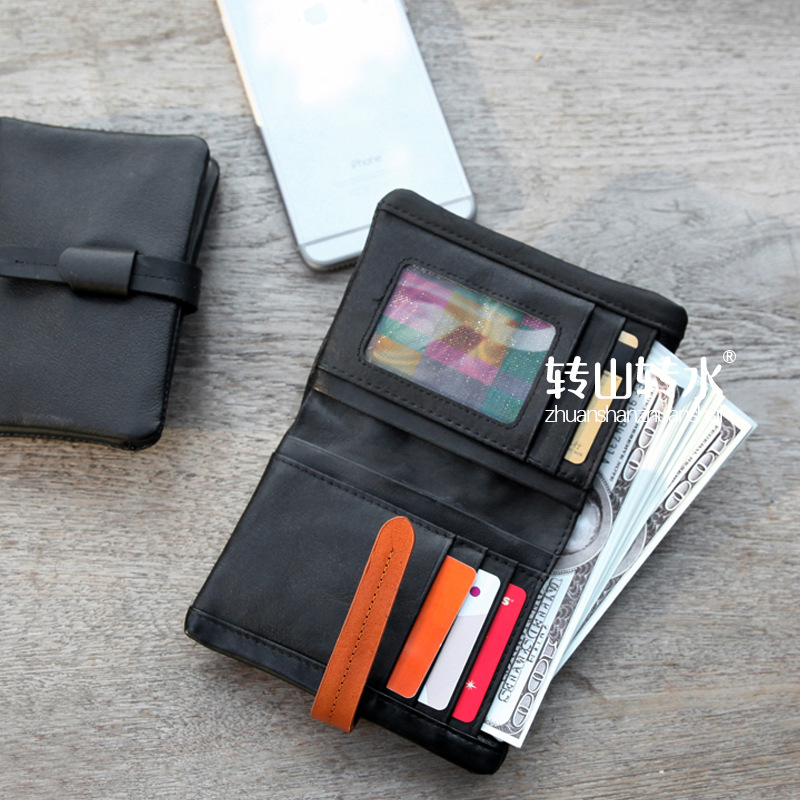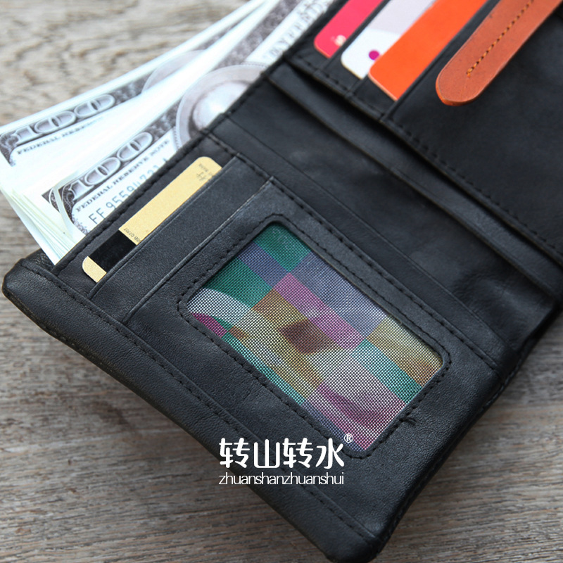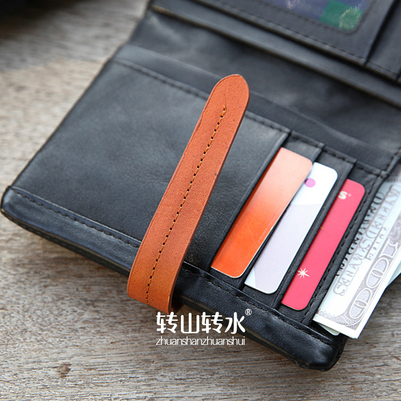2025년 신형 도시적 심플 남성용 배색 짧은 가죽 지갑, 1층 소가죽, 식물성 무두질 가죽, 다기능 세로형 지갑스토어 가기