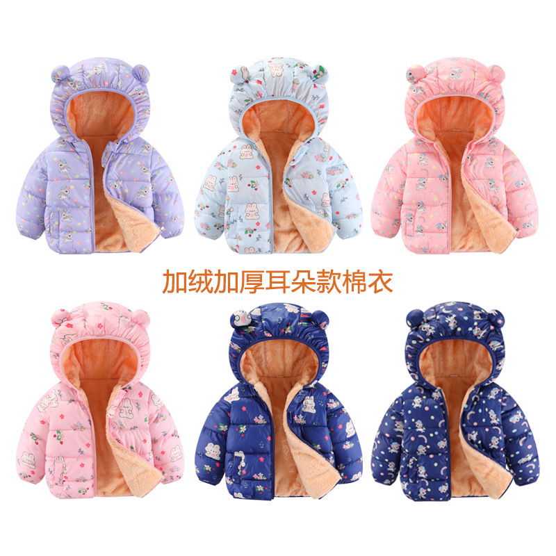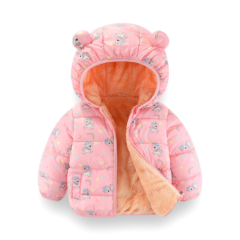 2025년 신상 아동용 다운 코튼 자켓, 남아 여아 프린트 아기 코튼 자켓, 유아용 자켓 도매