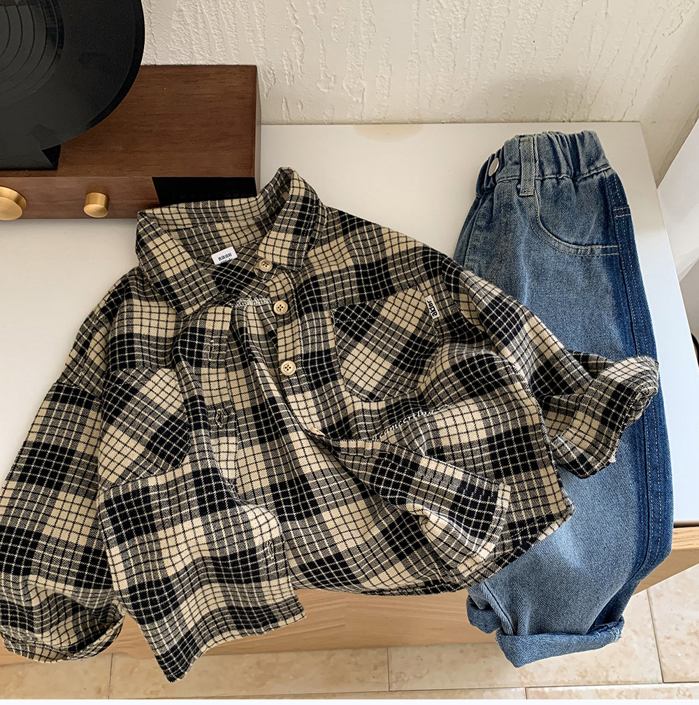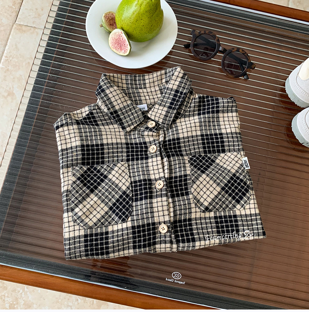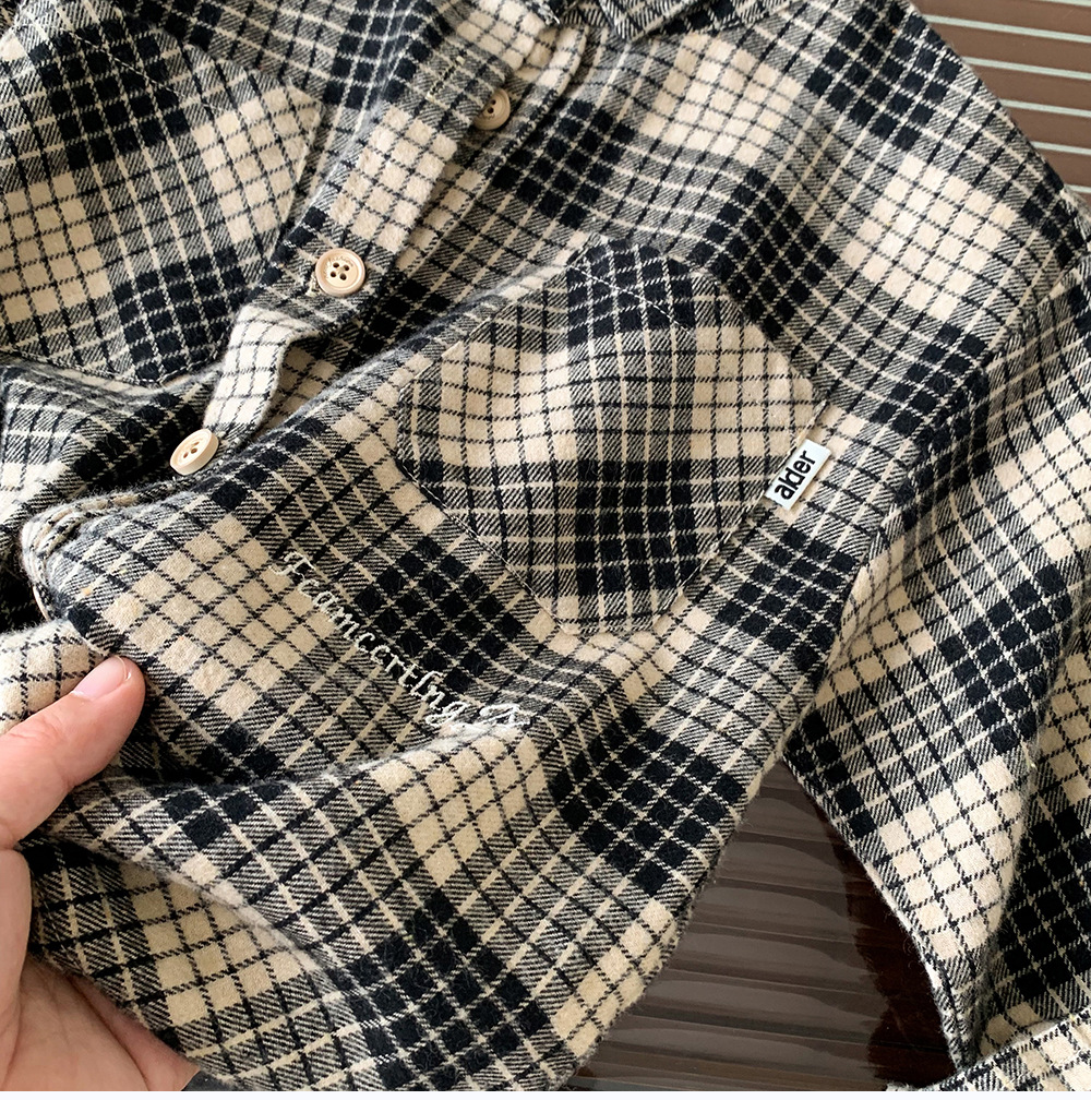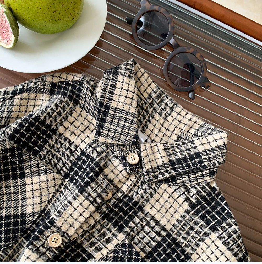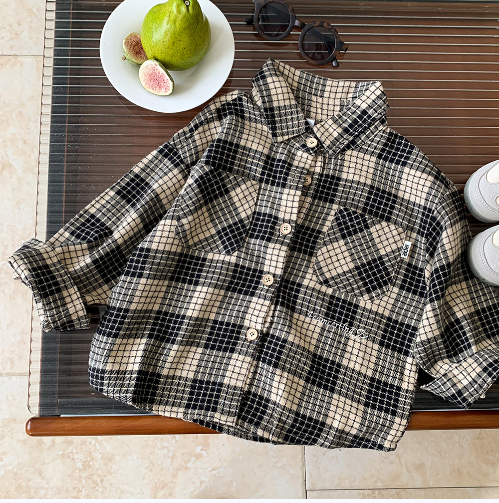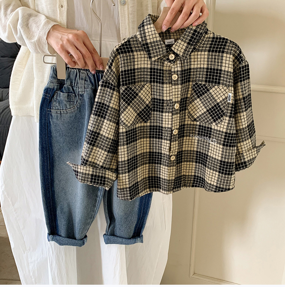 소년 셔츠 2024 새로운 가을 옷 느슨한 어린이 긴팔 셔츠 재킷 격자 유행 봄과 가을 탑