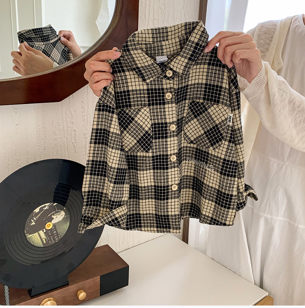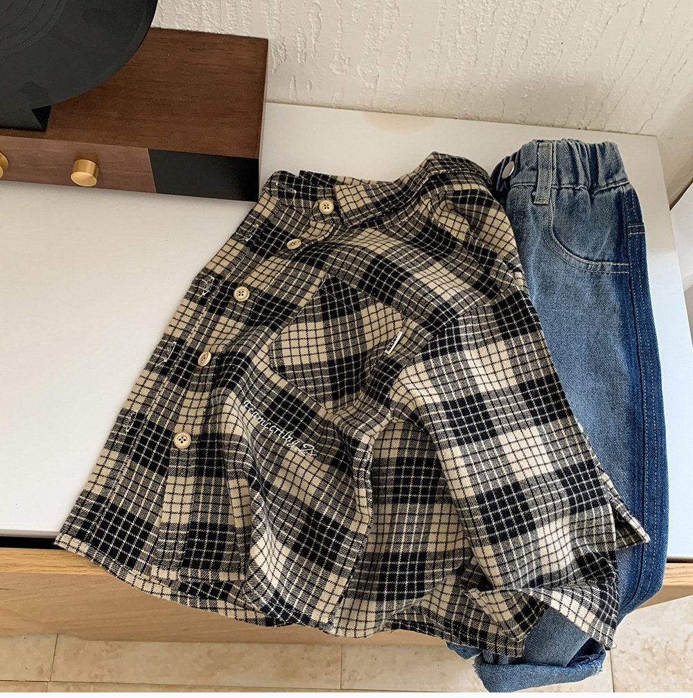 소년 셔츠 2024 새로운 가을 옷 느슨한 어린이 긴팔 셔츠 재킷 격자 유행 봄과 가을 탑스토어 가기