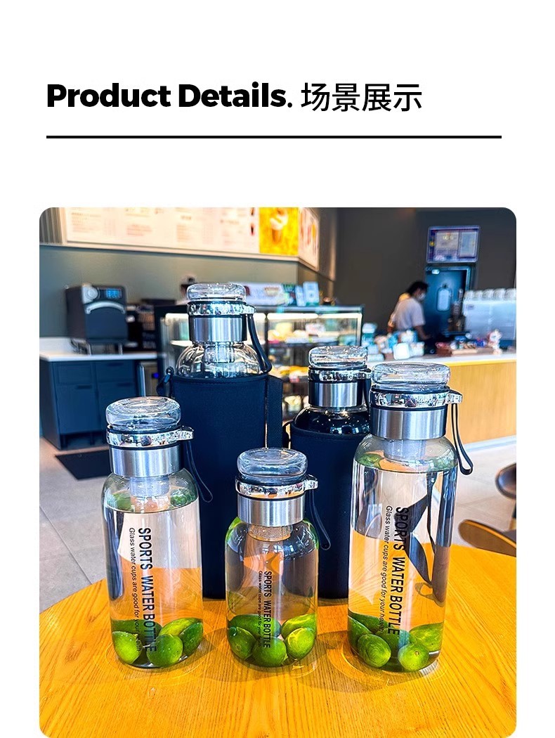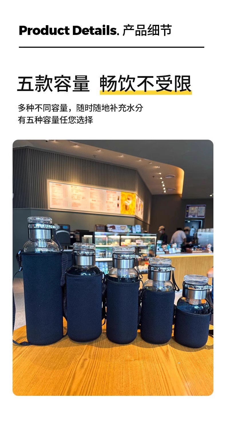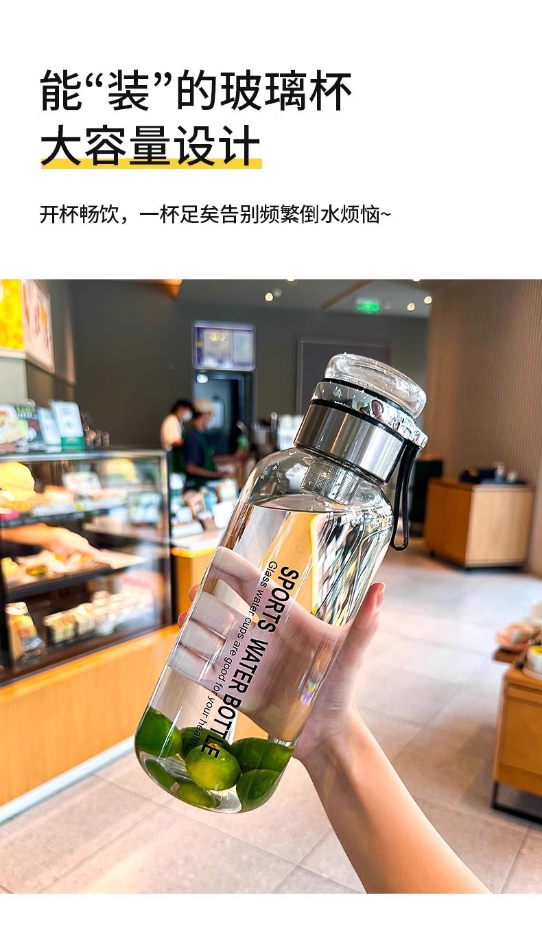유리 1000ml 대용량 물 컵 차 분리 차 컵 단일 폭발 방지 고온 방지 부두 컵스토어 가기
