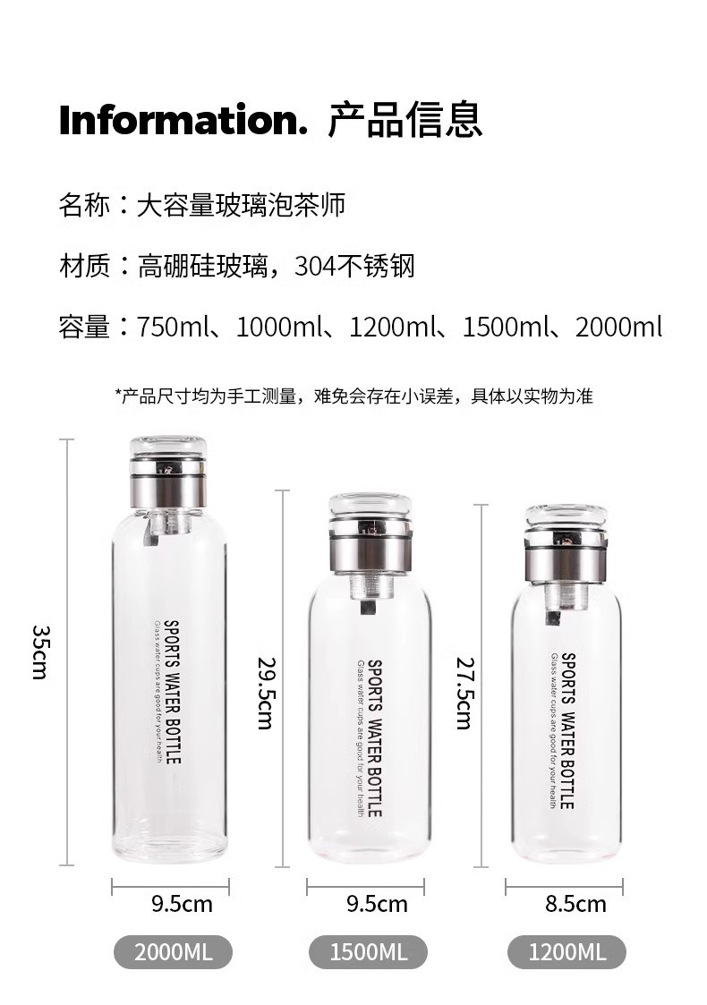 유리 1000ml 대용량 물 컵 차 분리 차 컵 단일 폭발 방지 고온 방지 부두 컵