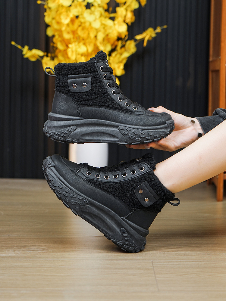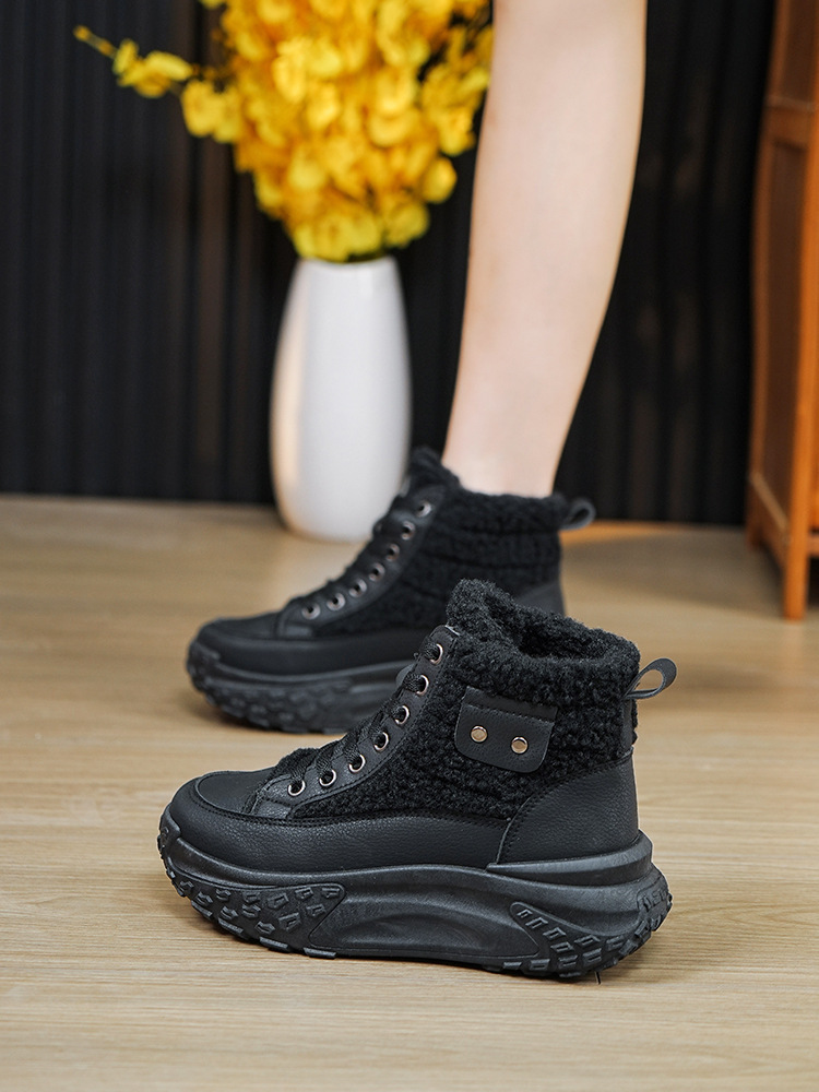 2024 겨울 코튼 신발 여성 기모 두껍게 새로운 올 매치 따뜻한 미끄럼 방지 하이탑 신발 외부 착용 가을 및 겨울 스노우 부츠스토어 가기