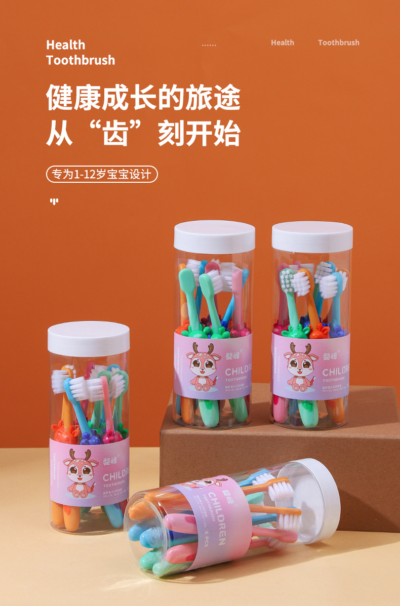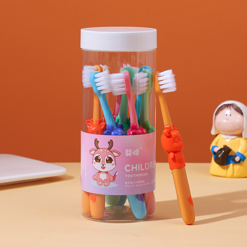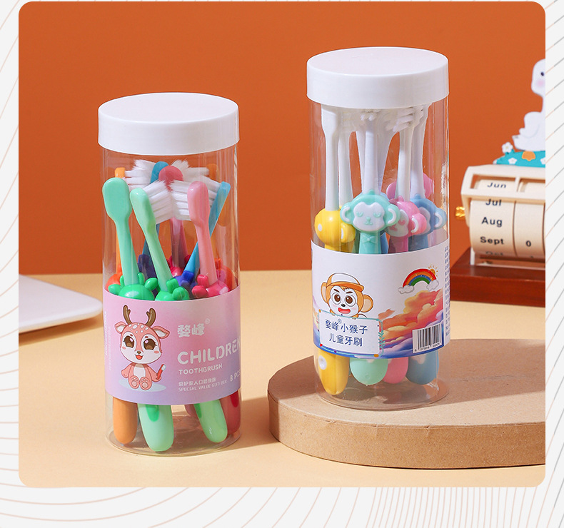 어린이 칫솔 8 팩 아기 칫솔 부드러운 머리 편안한 어린이 만화 칫솔 2-12 년 된 배럴 칫솔