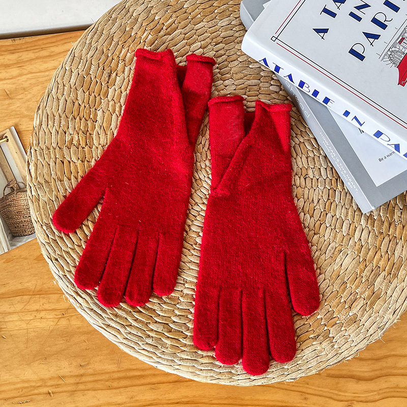 새로운 온난화 장갑 양모 가을과 겨울 다섯 손가락 니트 솔리드 컬러 냉간 터치 스크린 캐시미어 라이딩 장갑 여성용 겨울스토어 가기