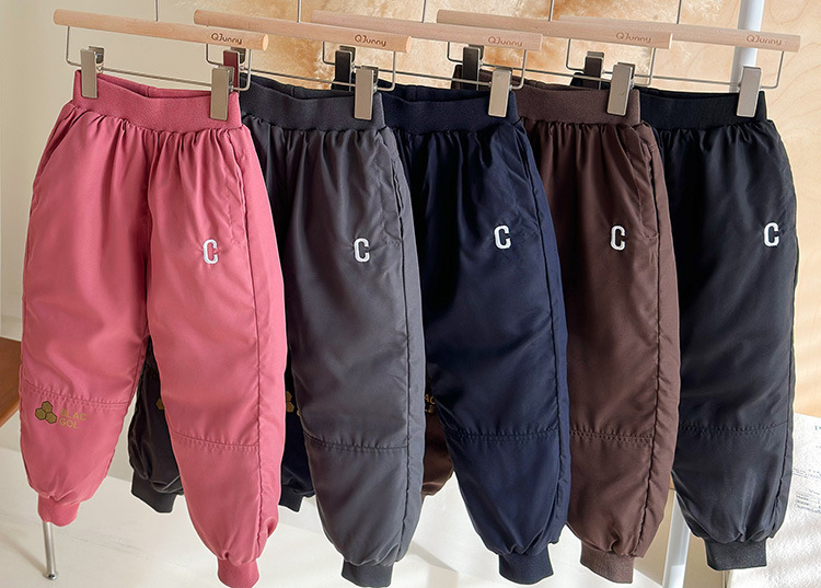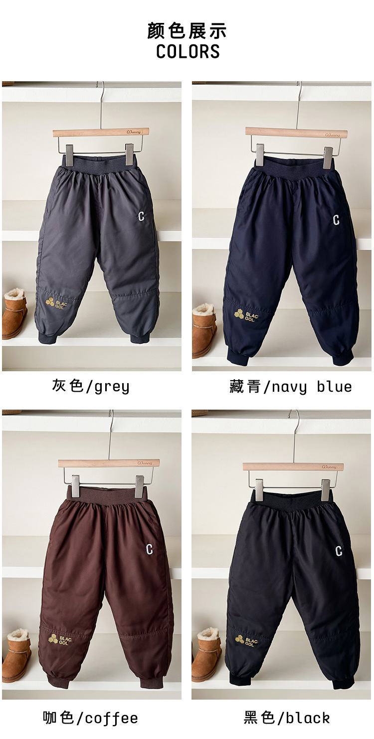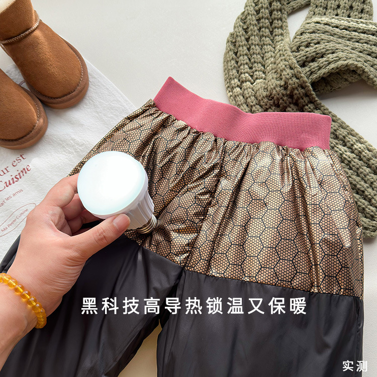 2024년 신상 아동용 블랙 골드 그래핀 바지, 중대형 아동용 방풍 캐주얼 바지, 남아 여아 겉옷용 두꺼운 바지스토어 가기