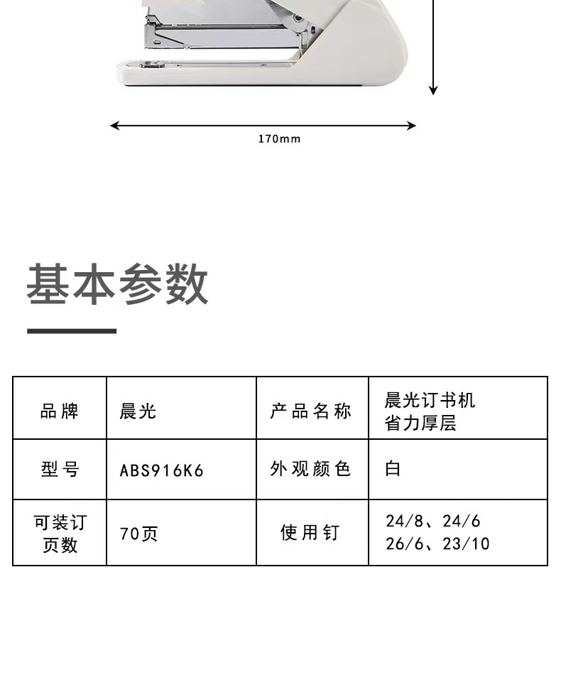 Chenguang 테이크 아웃 포장 다기능 바인딩 기계 학생 사무실 노동 절약 두꺼운 레이어 스테이플러 70 페이지 ABS916K6스토어 가기