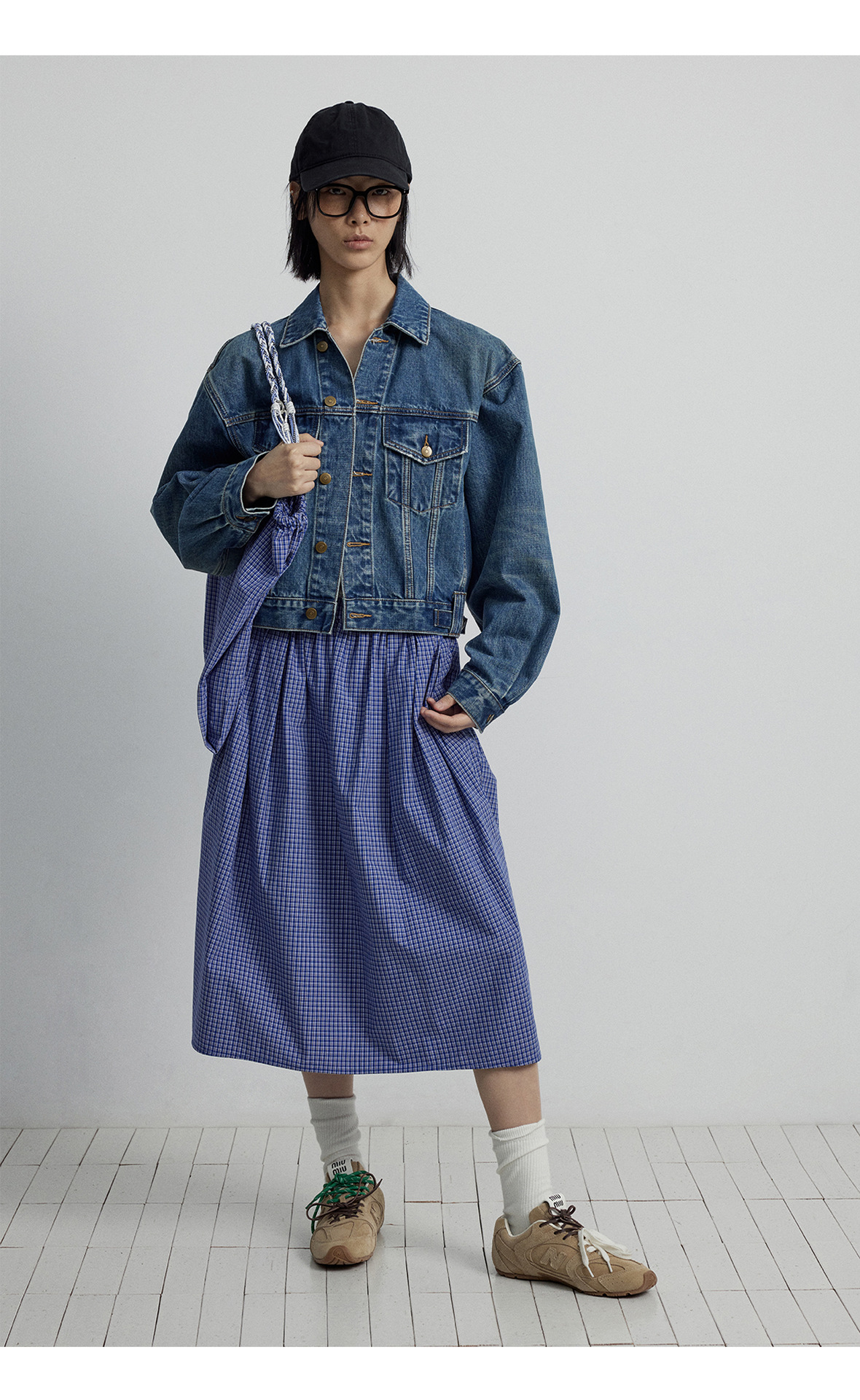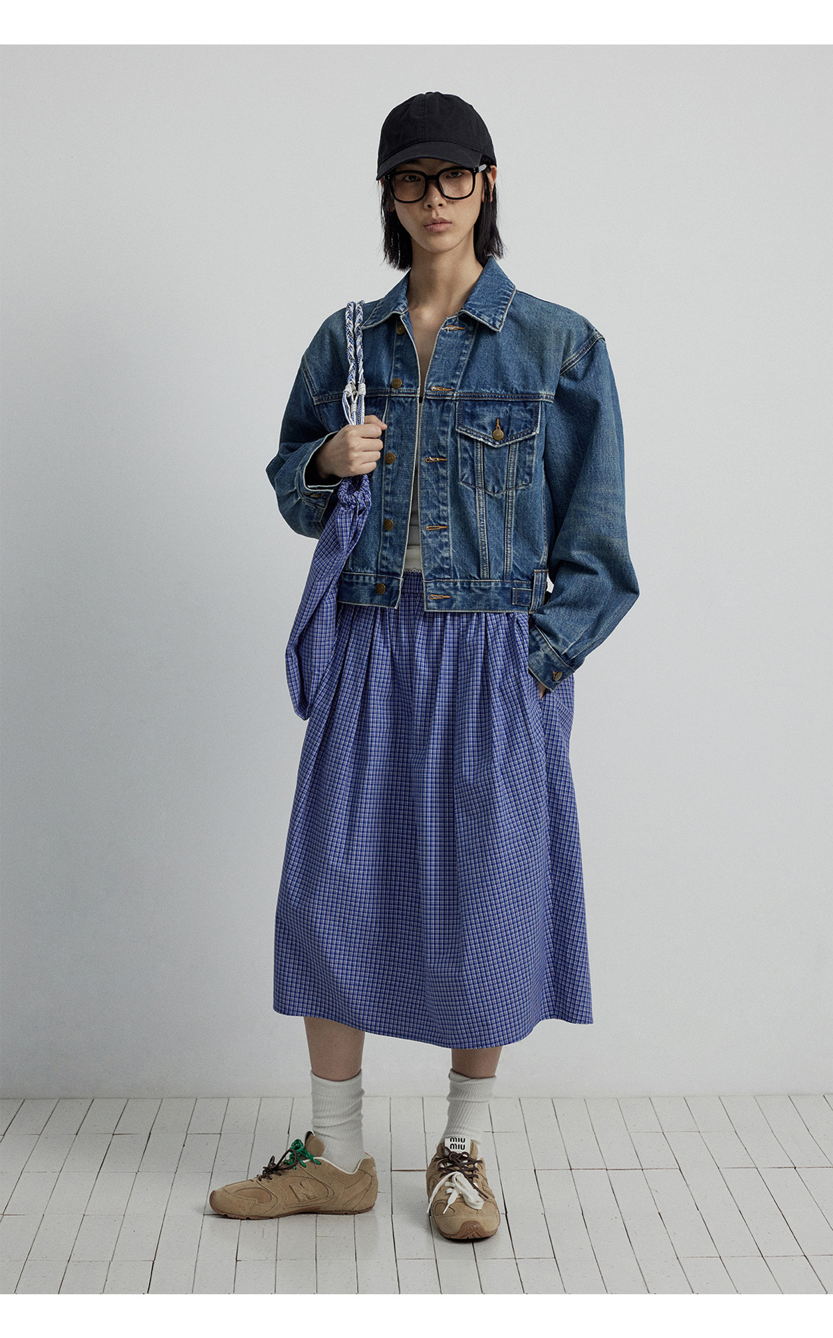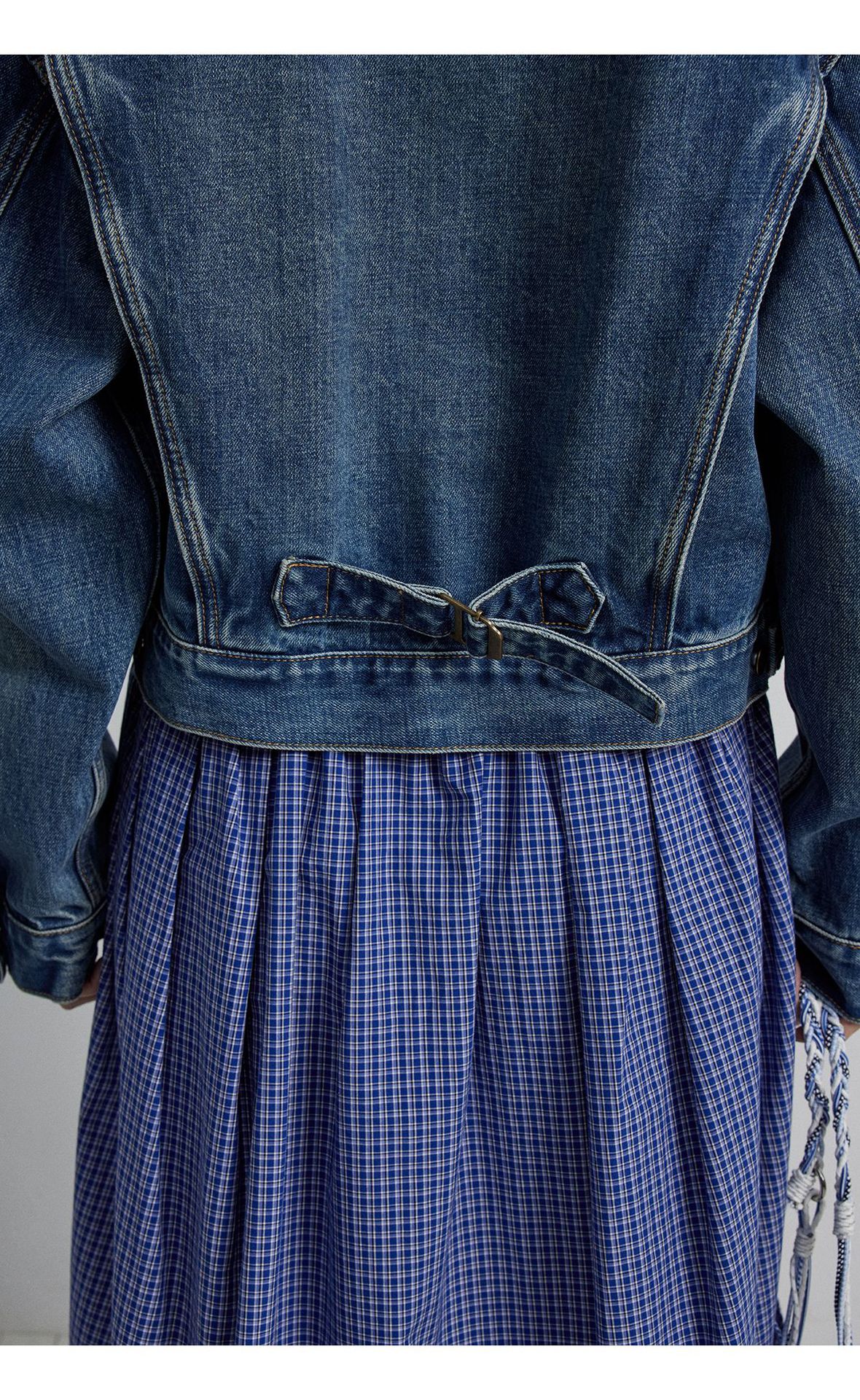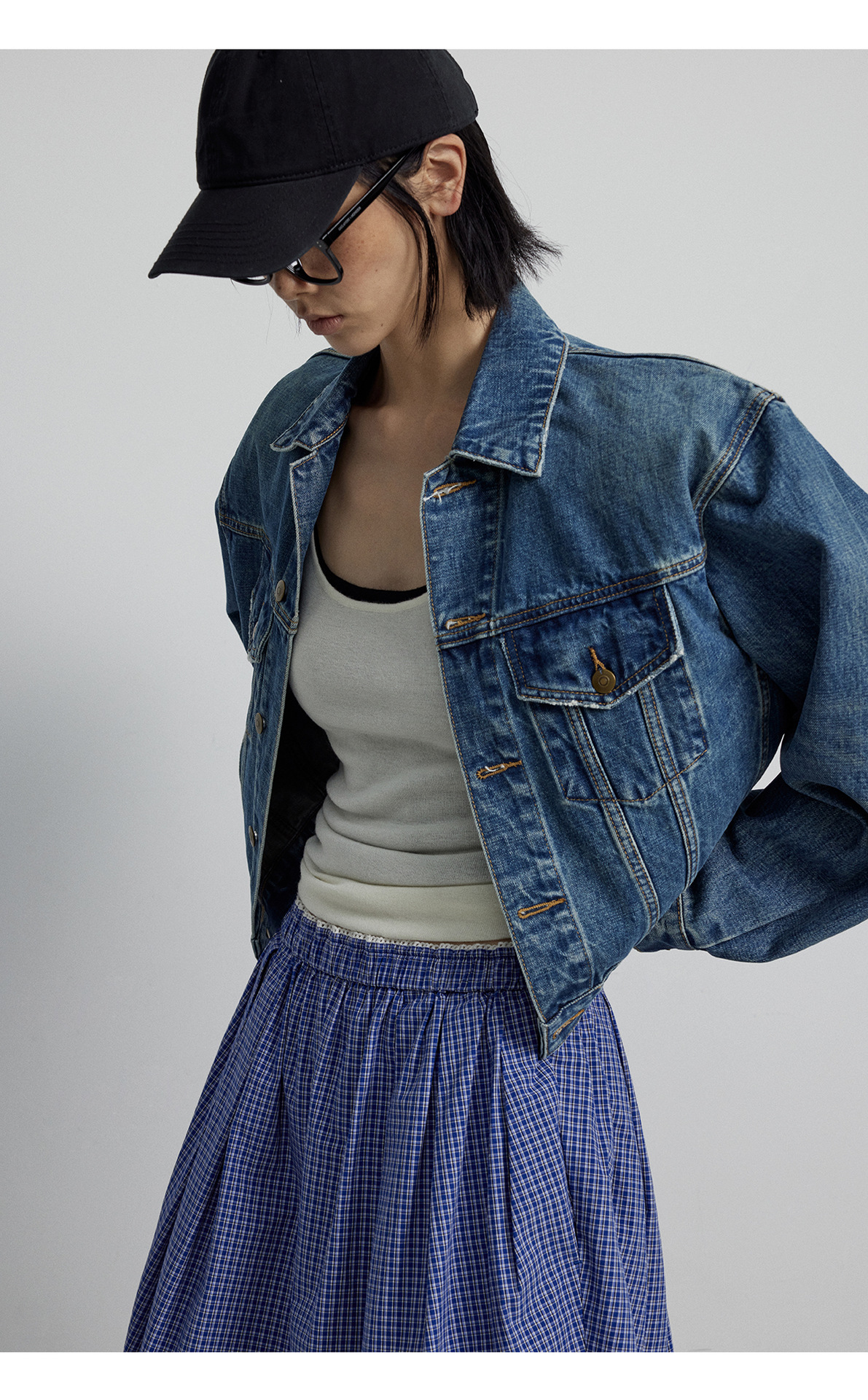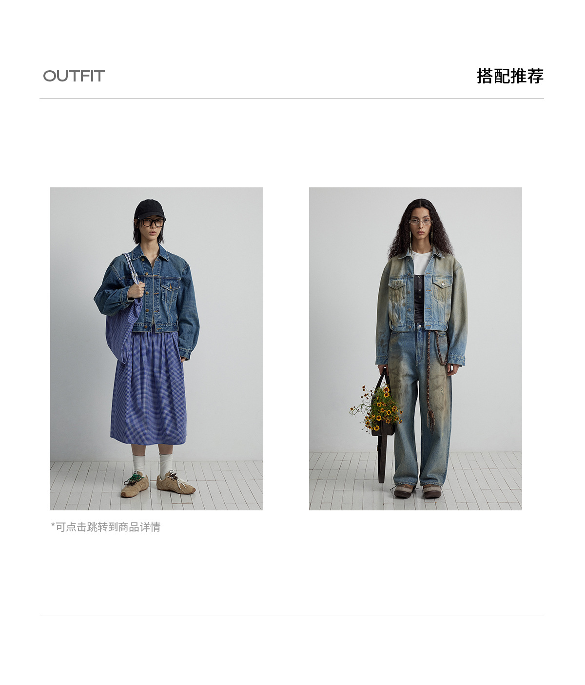 [시티] 신상 레트로 디스트레스드 페이디드 스테인 디자인 트리밍 인버티드 T 퓨어 코튼 라펠 데님 재킷 여성 V7080스토어 가기