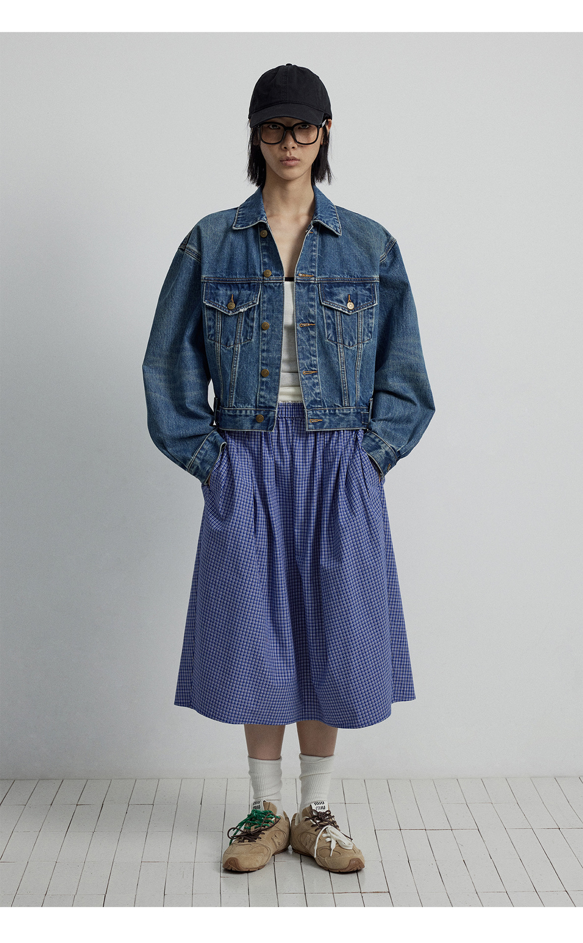 [시티] 신상 레트로 디스트레스드 페이디드 스테인 디자인 트리밍 인버티드 T 퓨어 코튼 라펠 데님 재킷 여성 V7080