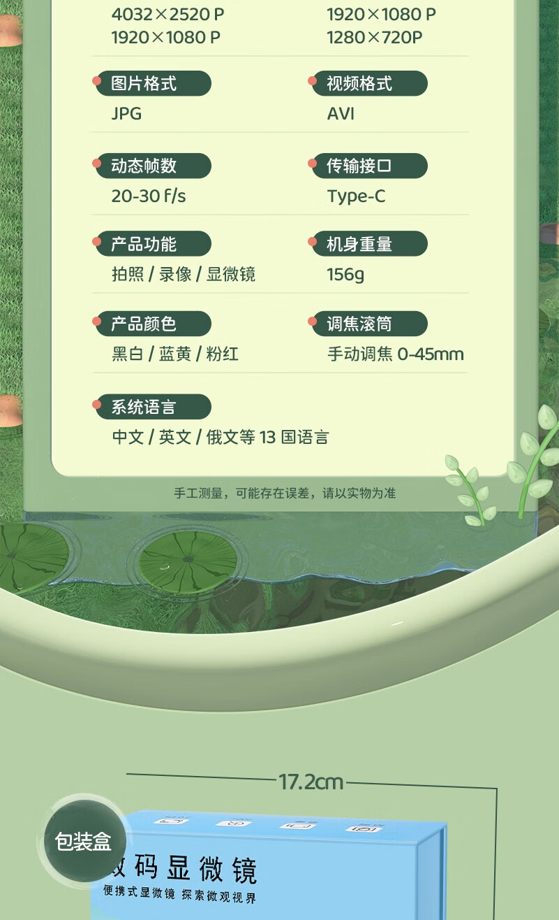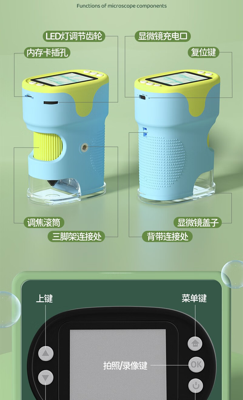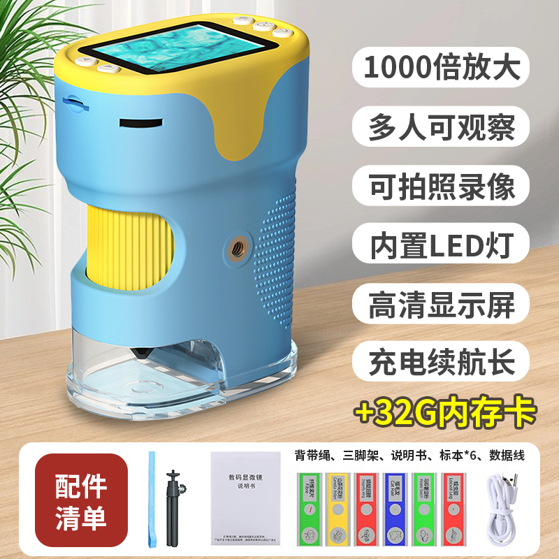 • 파란색 [스크린 충전 현미경] 32G 메모리 + 삼각대 + 끈 + 표본 6개