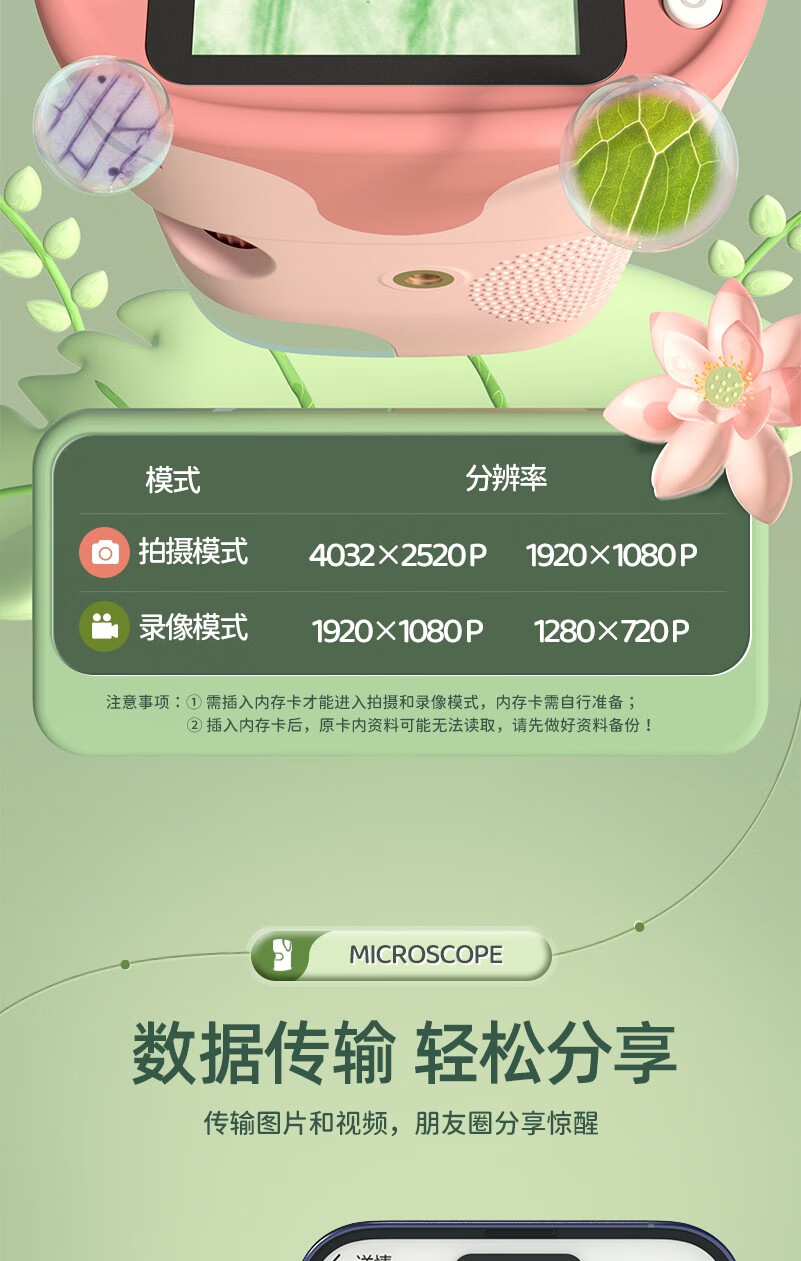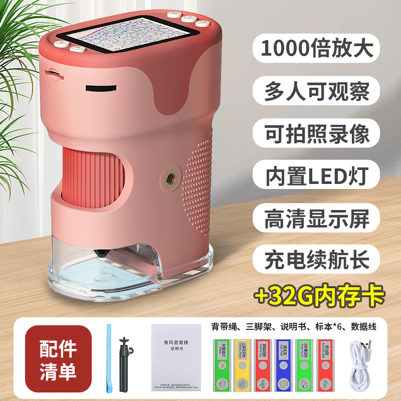 • 핑크 [스크린 충전현미경] 32G 메모리 + 삼각대 + 랜야드 + 표본 6개