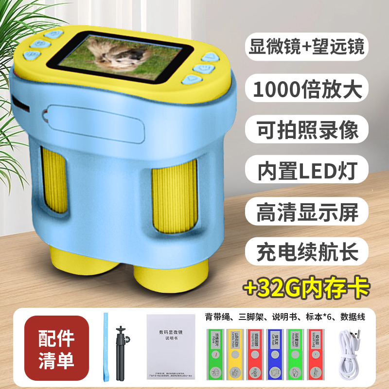 • 블루 [쌍안경 + 현미경] 32G + 삼각대 + 끈 + 표본 6개