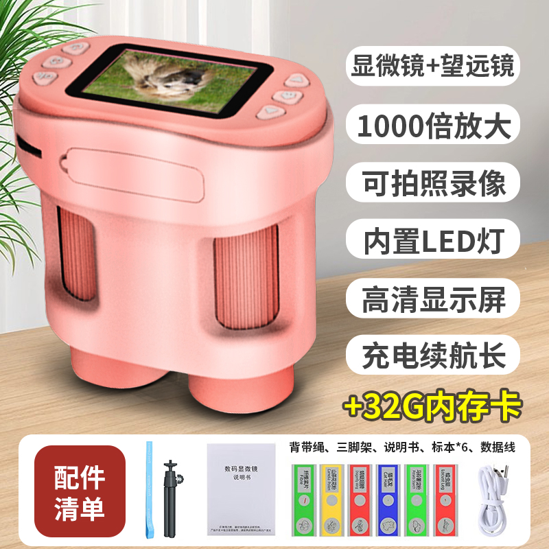 • 핑크 [쌍안경 + 현미경] 32G + 삼각대 + 끈 + 표본 6개