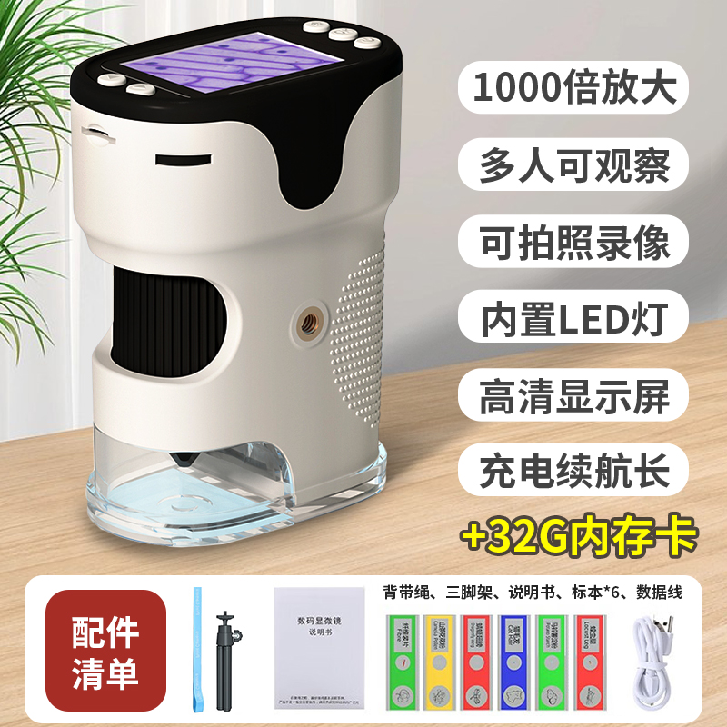 • 흰색 [스크린 충전현미경] 32G 메모리 + 삼각대 + 랜야드 + 표본 6개