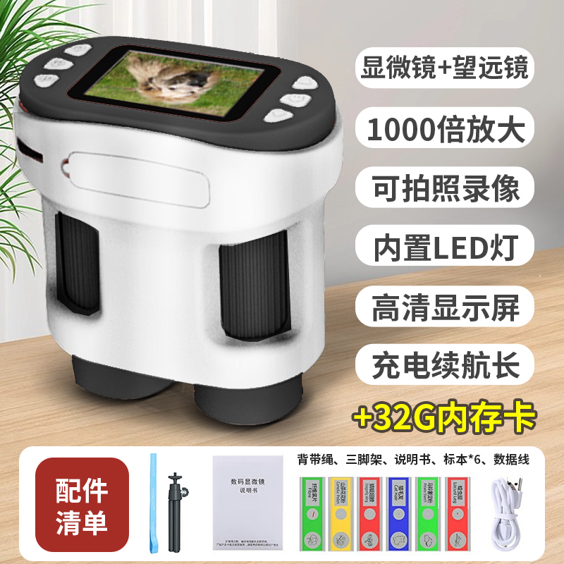 • 흰색 [쌍안경 + 현미경] 32G + 삼각대 + 끈 + 표본 6개