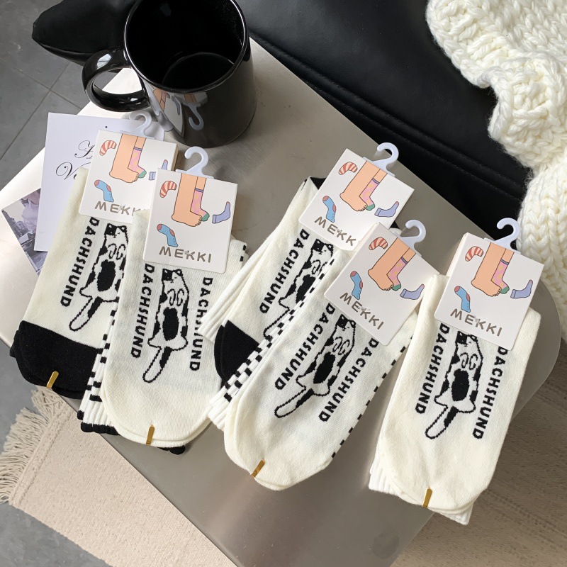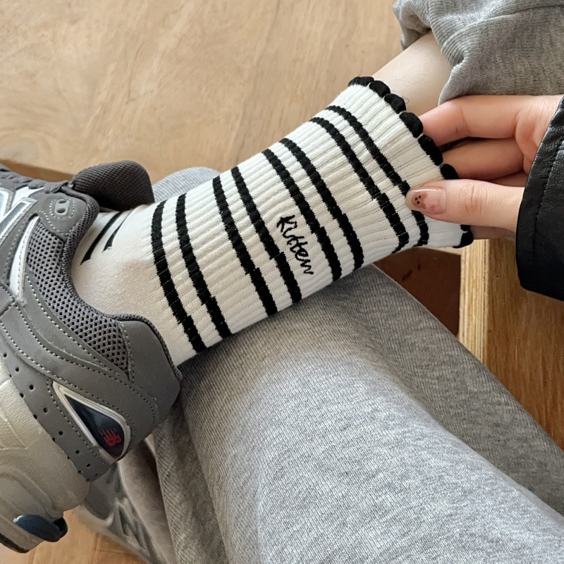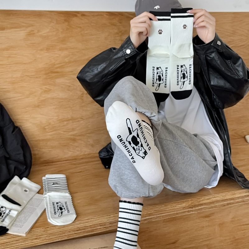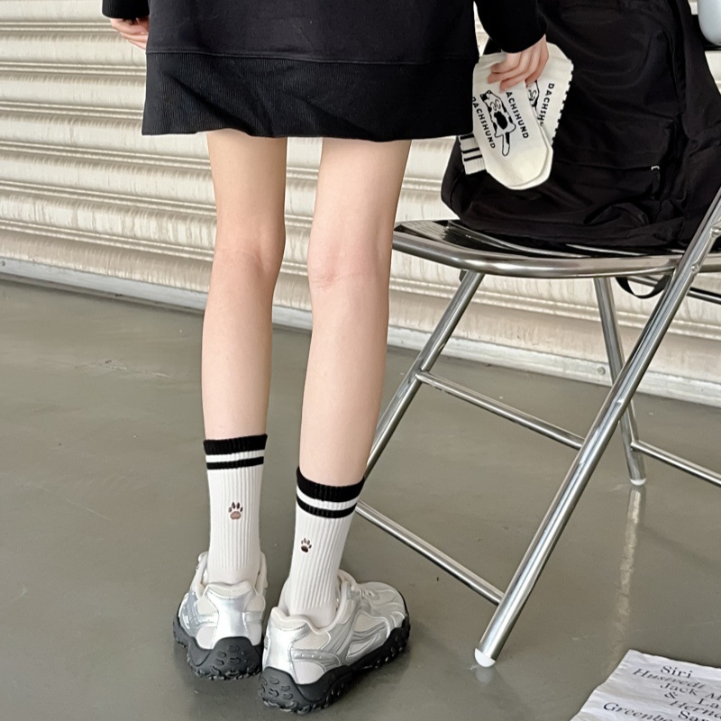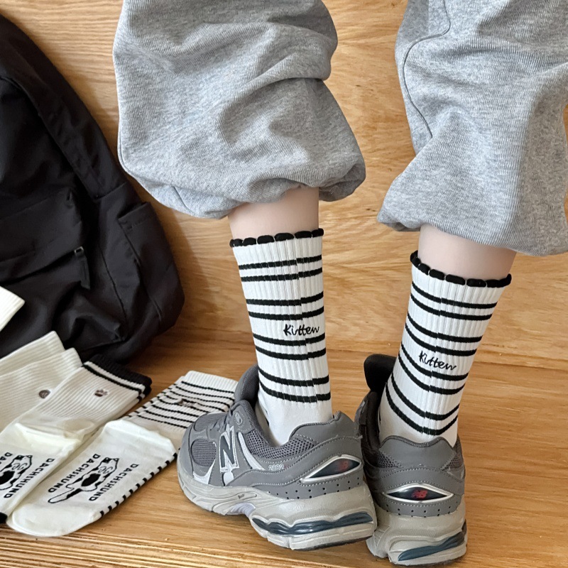 이른 가을 새로운 만화 귀여운 게으른 고양이 여성 튜브 양말 빗질면 높은 고무 흑백 고양이 자수 스포츠 스타킹스토어 가기