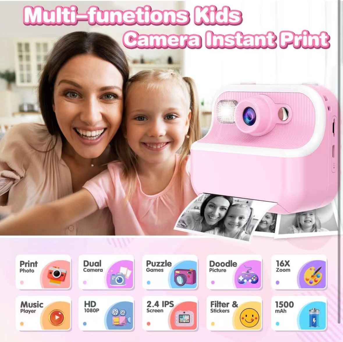 어린이 미니 만화 카메라 열 인쇄 새로운 고화질 사진 더블 샷 SLR 교육 장난감 선물 국경스토어 가기