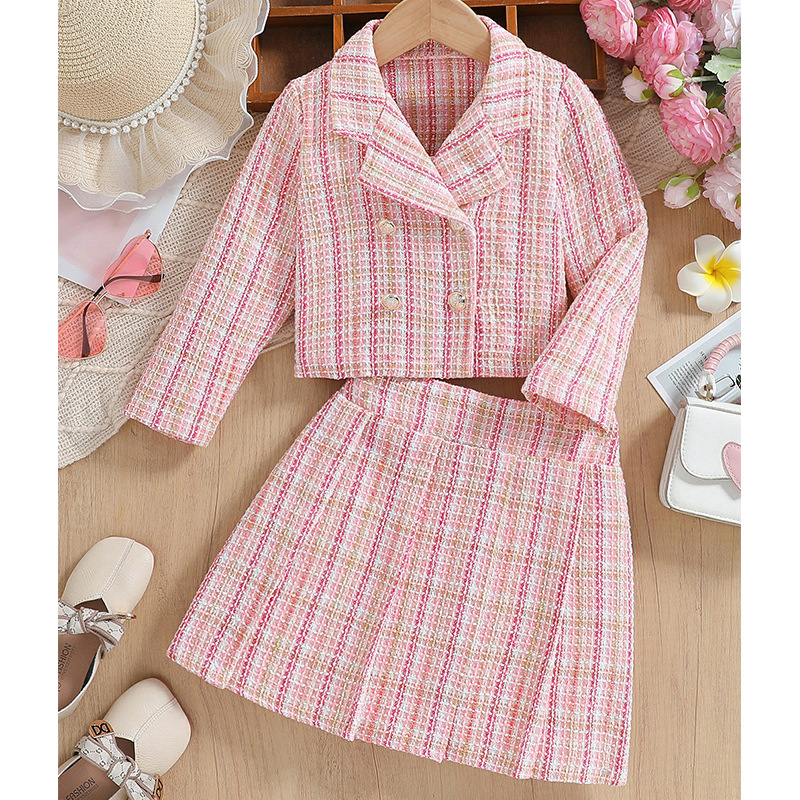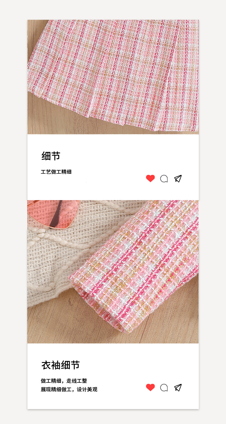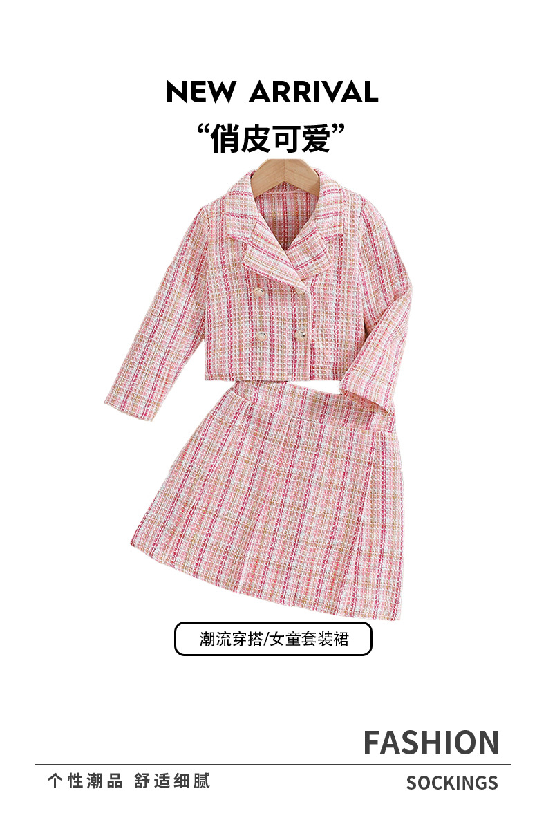 국경 간 대외 무역 소녀 격자 무늬 여인의 달콤한 핑크 격자 무늬 트위드 스타일 투피스 원피스스토어 가기