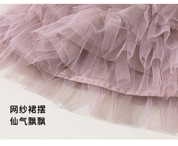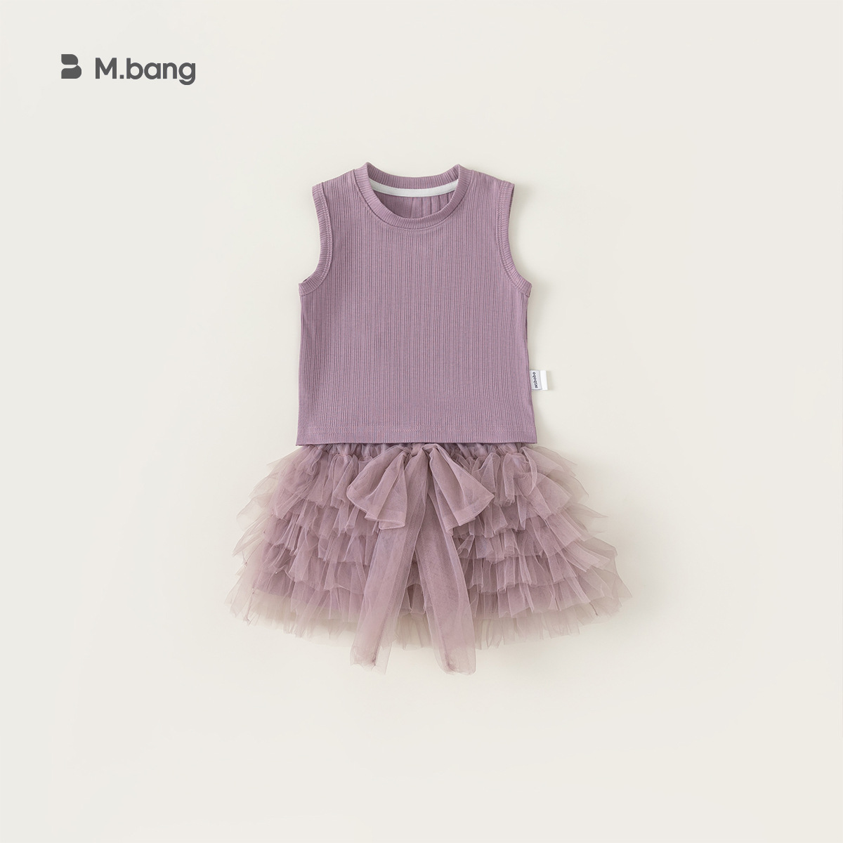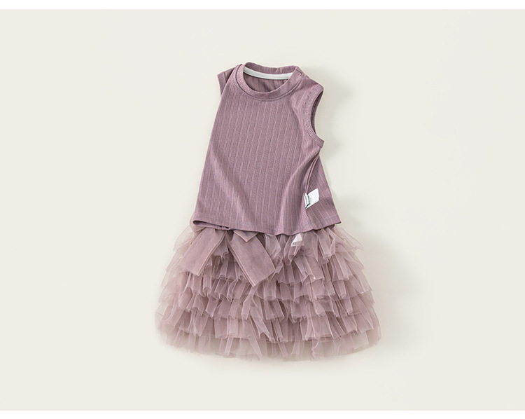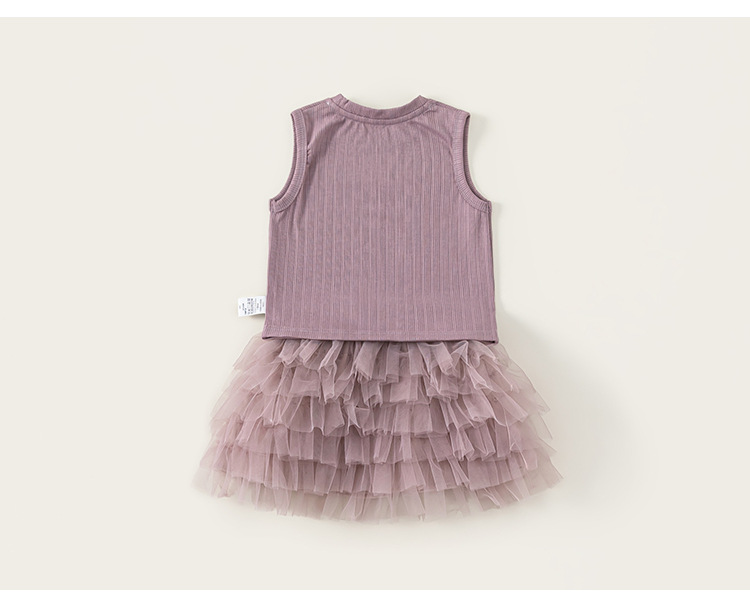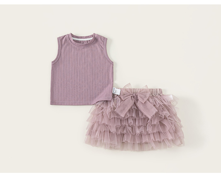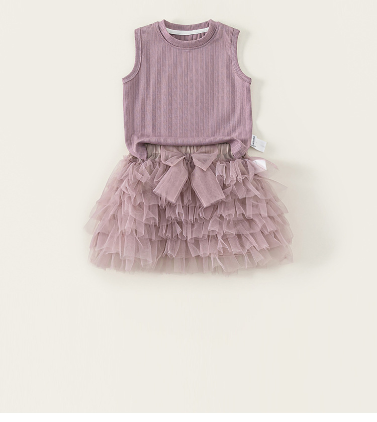 봉 선정한 여자 여름 우아한 투피스 민소매 조끼 메쉬 케이크 스커트 아기 아동복 세트 XT24306