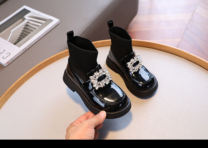 소녀 짧은 부츠 어린이 검은 작은 가죽 신발 2024 봄과 가을 새로운 도착 작은 소녀 마틴 부츠 소프트 단독 패션 양말 유행 부츠스토어 가기